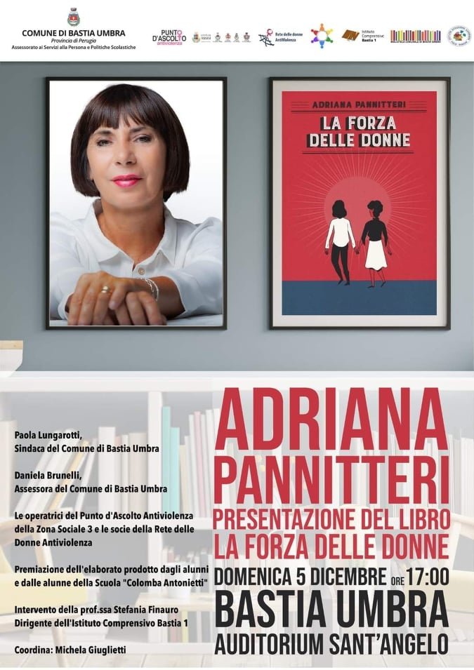 Alla presentazione del libro “La Forza delle donne” (Giulio Perrone Editore) sarà presente l’autrice, Adriana Pannitteri, scrittrice e giornalista del Tg1. Con l’autrice saranno presenti: Paola Lungarotti Sindaco del Comune di Bastia Umbra, Daniela Brunelli, Assessore del Comune di Bastia Umbra, le operatrici del Punto d’Ascolto Antiviolenza della Zona Sociale 3 e le rappresentanti RAV Rete delle Donne Antiviolenza.