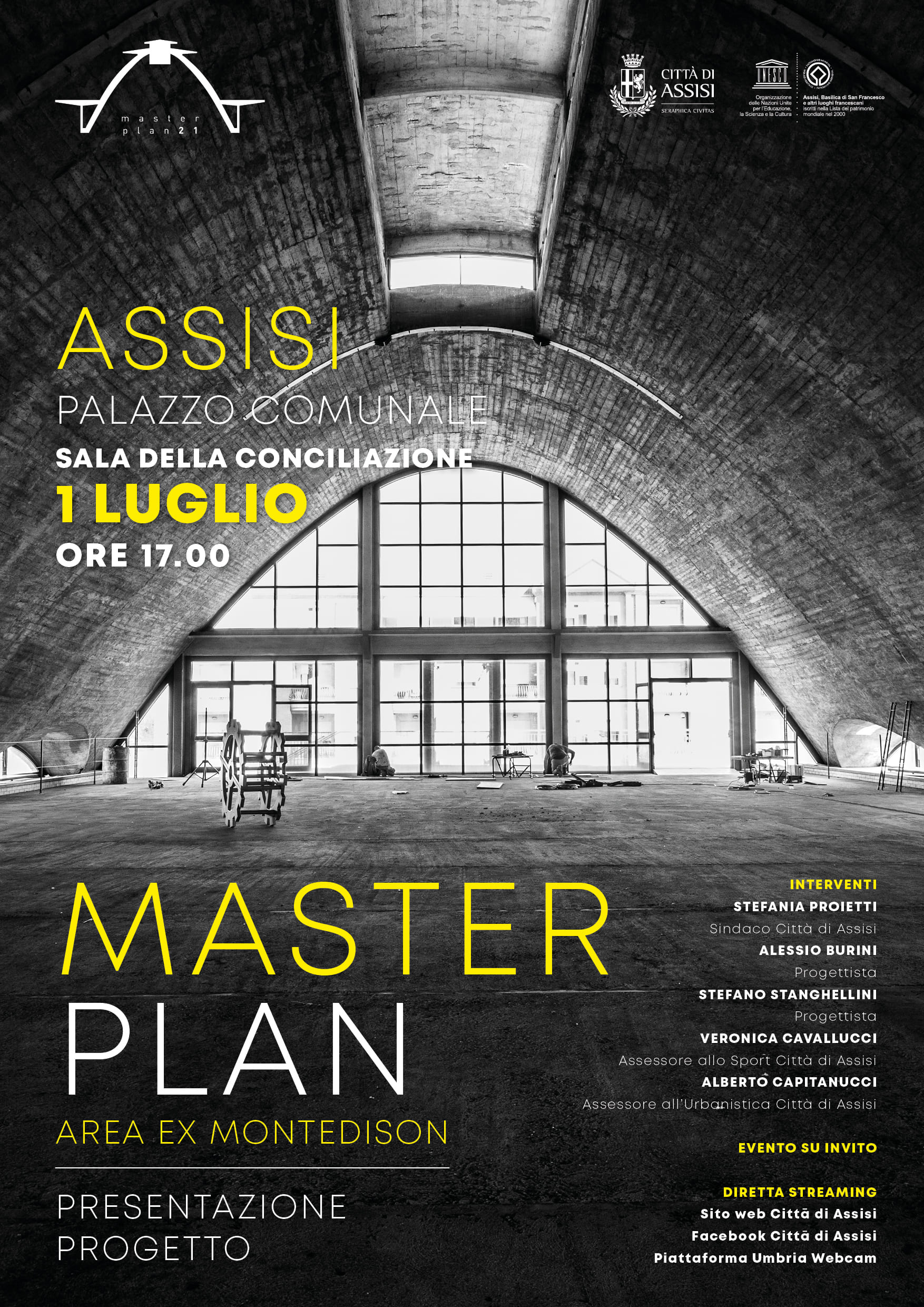La presentazione del Masterplan sull’ex area Montedison, inizialmente prevista per il 24 giugno, si terrà giovedì 1° luglio alle ore 17 presso la sala della Conciliazione nel palazzo comunale di Assisi.