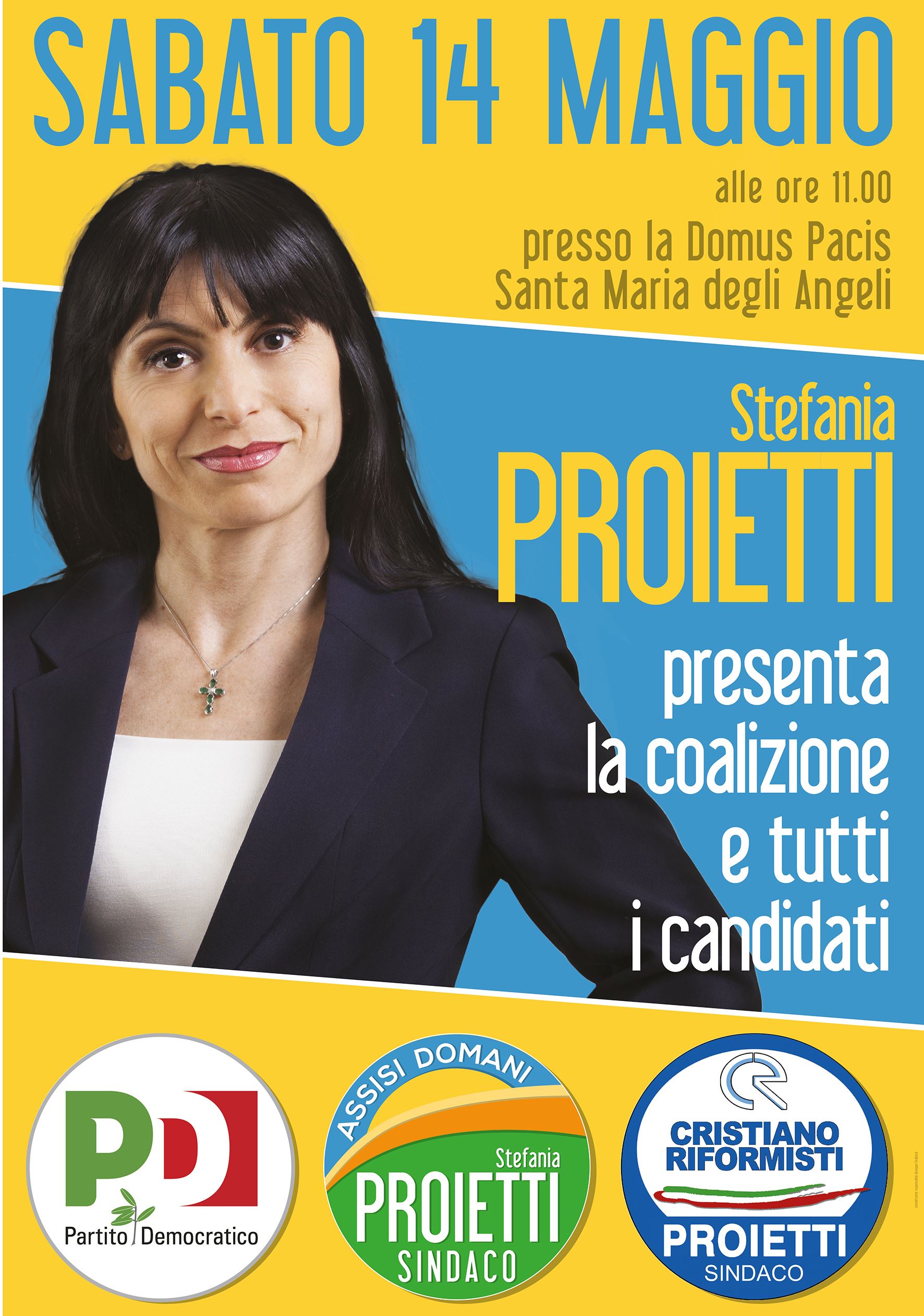 Conferenza stampa che si terrà Sabato 14 Maggio alle ore 11.00 presso l’Auditorium della Domus Pacis di Santa Maria degli Angeli per la presentazione della coalizione e dei candidati a sostegno del progetto civico di Stefania Proietti candidata a Sindaco di Assisi.