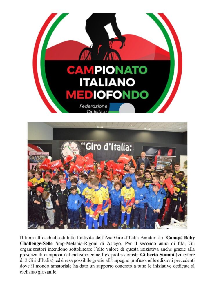 Presentazione Giro d’Italia Amatori FCI Enti e Canape’ baby Challenge Selle SMP.