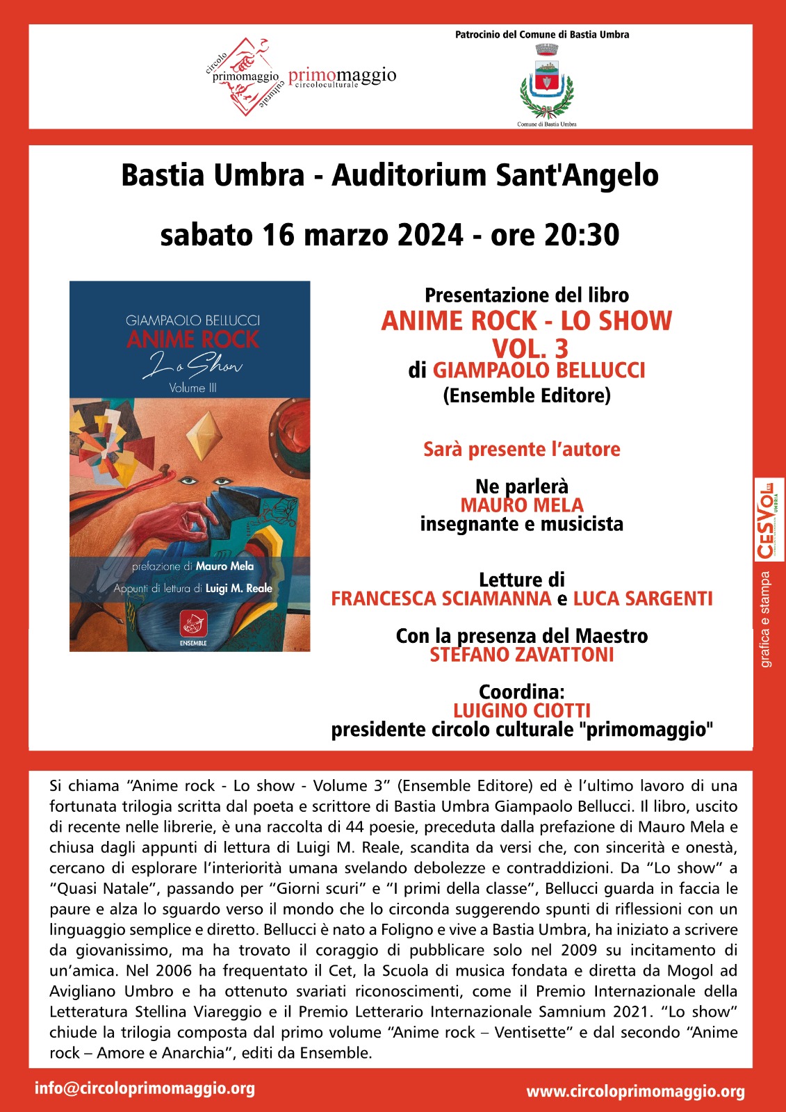 Organizzato dal circolo culturale “primomaggio” con il patrocinio del Comune di Bastia Umbra