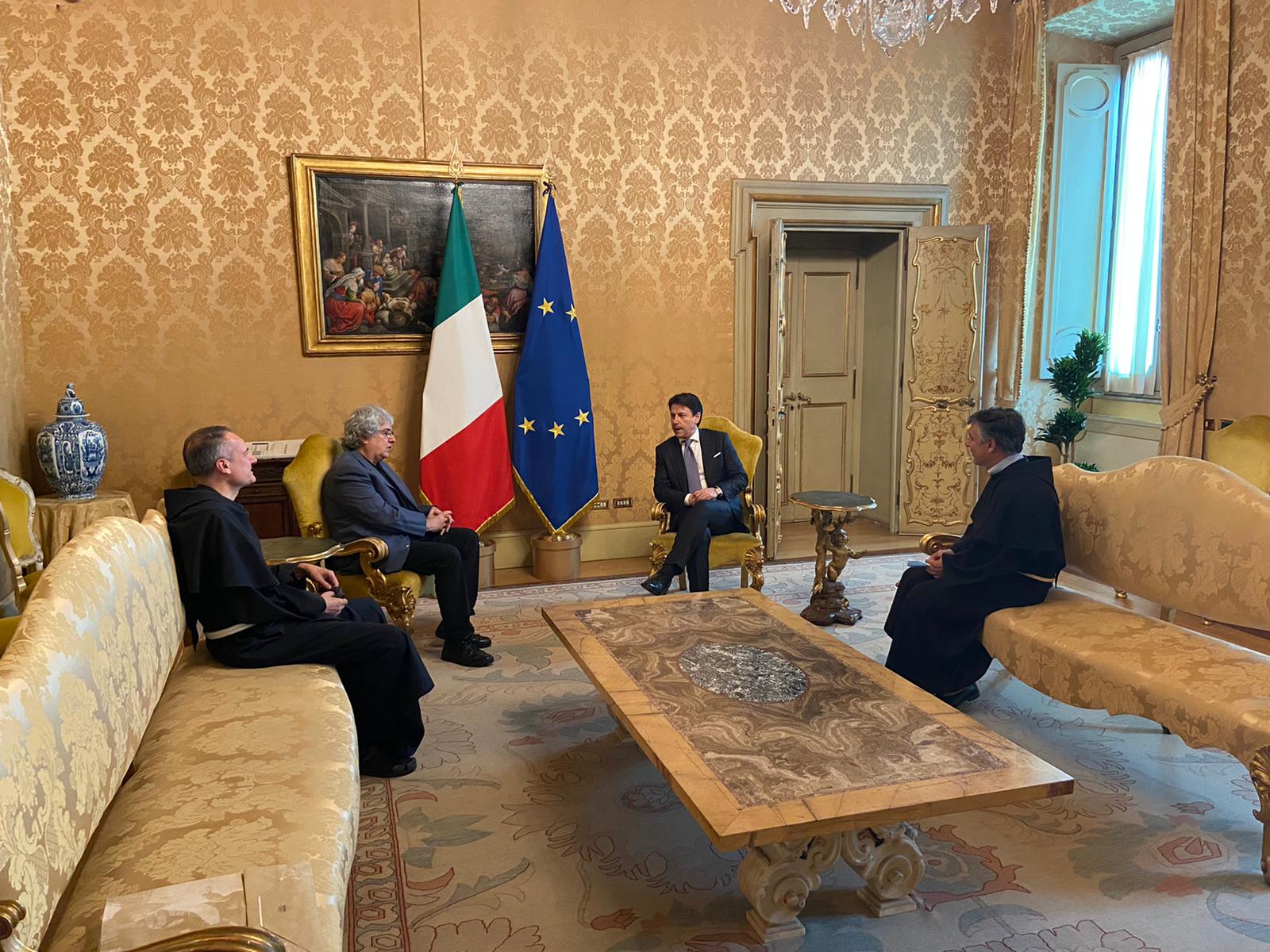 All’incontro di ieri con Presidente Conte presenti padre Gambetti, padre Fortunato ed Ermete Realacci per “Manifesto Assisi”