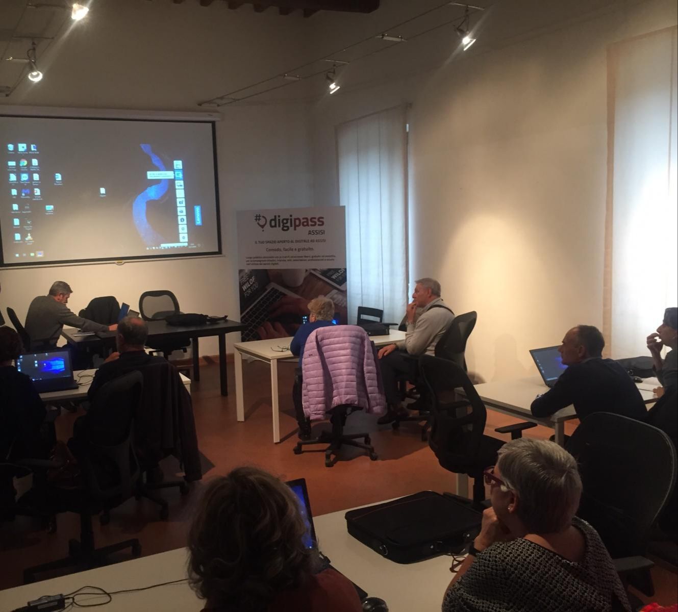 Un processo di digitalizzazione nell’accompagnare i cittadini, i professionisti, le imprese, le associazioni, le scuole, nell’utilizzo di servizi digitali, questo è il Digipass punto di riferimento per i comuni di Assisi, Bastia Umbra, Bettona, Cannara, Valfabbrica che rientrano nell’ambito sociale 3. A Palazzo del Capitano del Perdono a Santa Maria degli Angeli sì è aperta questa importante collaborazione – dice l’Assessore Filiberto Franchi – presente alla prima iniziativa il 22 novembre che ha visto l’Università Libera di Bastia Umbra realizzare il corso di Computer Base presso il Digipass. Gli altri appuntamenti saranno il 29 novembre, il 6 e il 13 dicembre, dalle 15.30 alle 17.00. Oltre al corso gli iscritti come tutti i cittadini potranno utilizzare la struttura perché i “Digipass sono luoghi pubblici, aperti, ad accesso libero, in cui poter trovare, nei giorni e orari di apertura indicati, un esperto a disposizione, in grado di accompagnare cittadini e imprese nell’utilizzo di servizi digitali”.