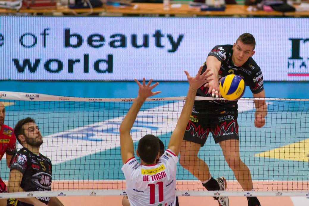Con Birarelli in campo dal primo pallone e Fromm a formare una diagonale di schiacciatori tutta tedesca con Kaliberda, la Sir trova più continuità nel gioco di primo attacco e più coesione in fase break nella correlazione muro-difesa, approfittando anche di una Revivre un po’ fallosa (22 errori diretti in tre set) e priva della coppia di attaccanti bulgara Milushev-Skrimov.