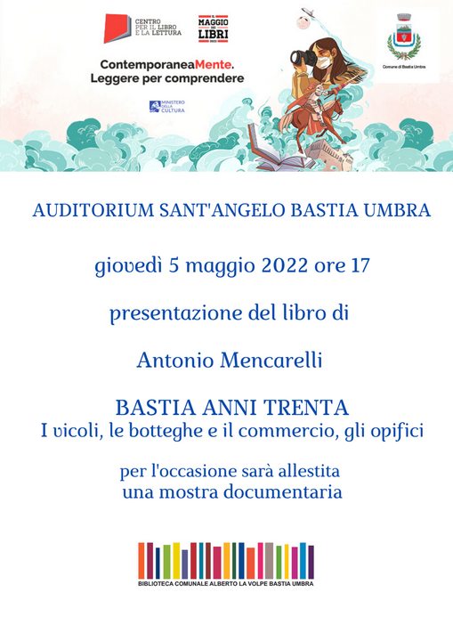 In programma, nell’ambito della rassegna Il Maggio dei Libri, la presentazione del libro di Antonio Mencarelli “Bastia anni Trenta. i vicoli, le botteghe e il commercio, gli opifici”, edito da Il Formichiere, nell’anno 2021.