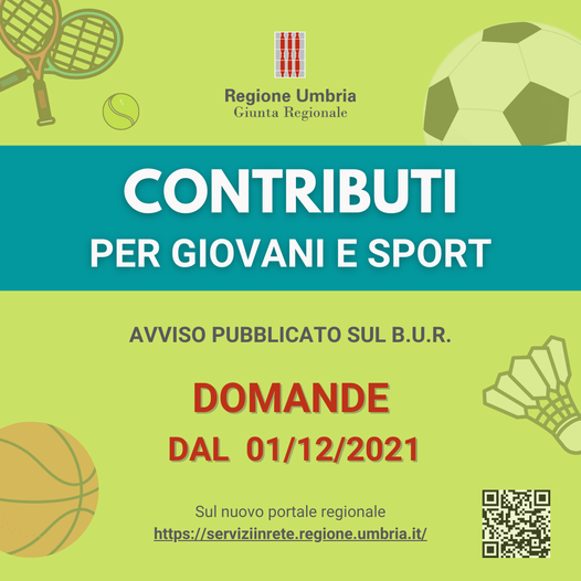 Pubblicato sul Bollettino n. 68 del 26/11/2021 del B.U.R. l’Avviso pubblico per l’erogazione di contributi a fondo perduto in favore delle famiglie umbre, a sostegno dei costi per la partecipazione dei figli alle attività delle associazioni e società sportive dilettantistiche iscritte nell’apposito registro tenuto dal CONI e dal Comitato Italiano Paralimpico.
