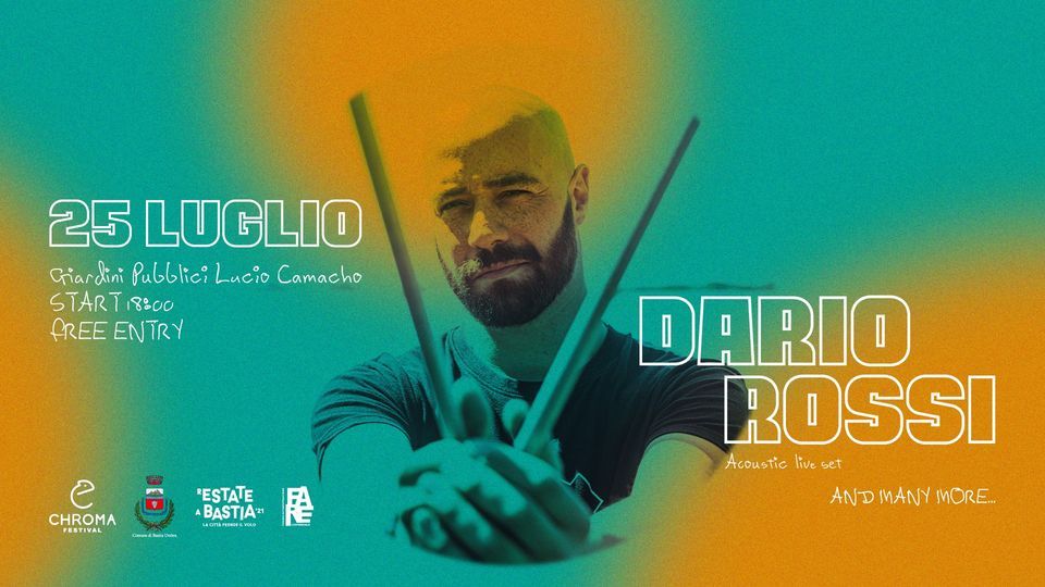 Ospite d’eccezione DARIO ROSSI in concerto con un Acoustic Live Set e insieme a lui Max P Dj, Zero Call, Rollover e Ale T. L’ingresso è gratuito su prenotazione al link https://bit.ly/CHROMAxREstate.