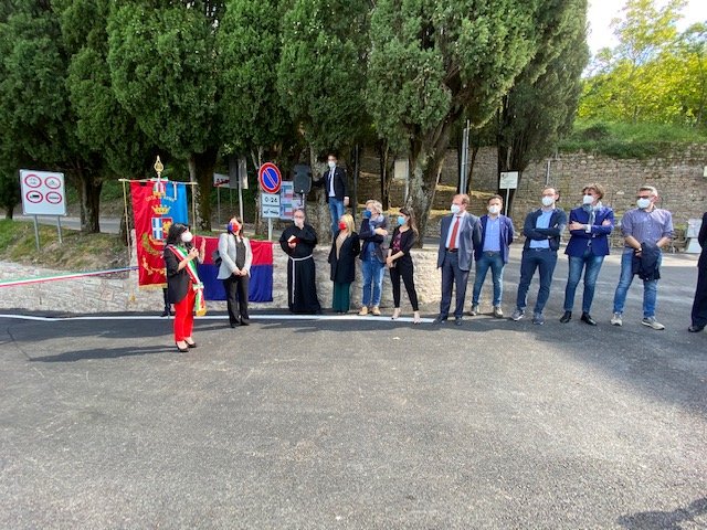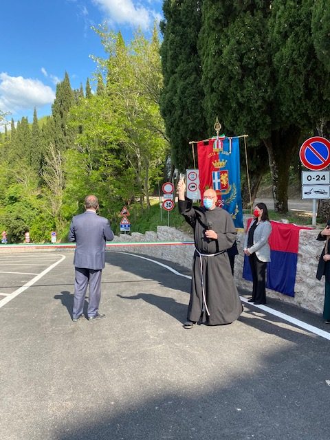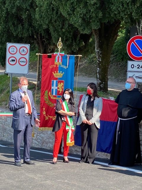Dopo la benedizione della via da parte del custode del Sacro Convento padre Marco Moroni e il taglio del nastro, è stato possibile percorrere via Ponte dei Galli fino al bosco di San Francesco.