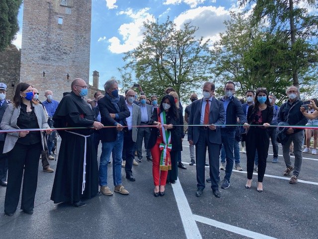 La riapertura di questa strada importante per la viabilità di Assisi, che conduce da Porta San Giacomo a Ponte Santa Croce, è avvenuta alle 16 alla presenza del sindaco Stefania Proietti, degli assessori Alberto Capitanucci, Veronica Cavallucci e Paola Vitali, del presidente del consiglio comunale Donatella Casciarri, dei consiglieri Cardinali, Masciolini e Sdringola, dei tecnici comunali e dei rappresentanti delle imprese che hanno effettuato i lavori, e dell’ingegner Fulvio Soccodato, dirigente dell’Anas.