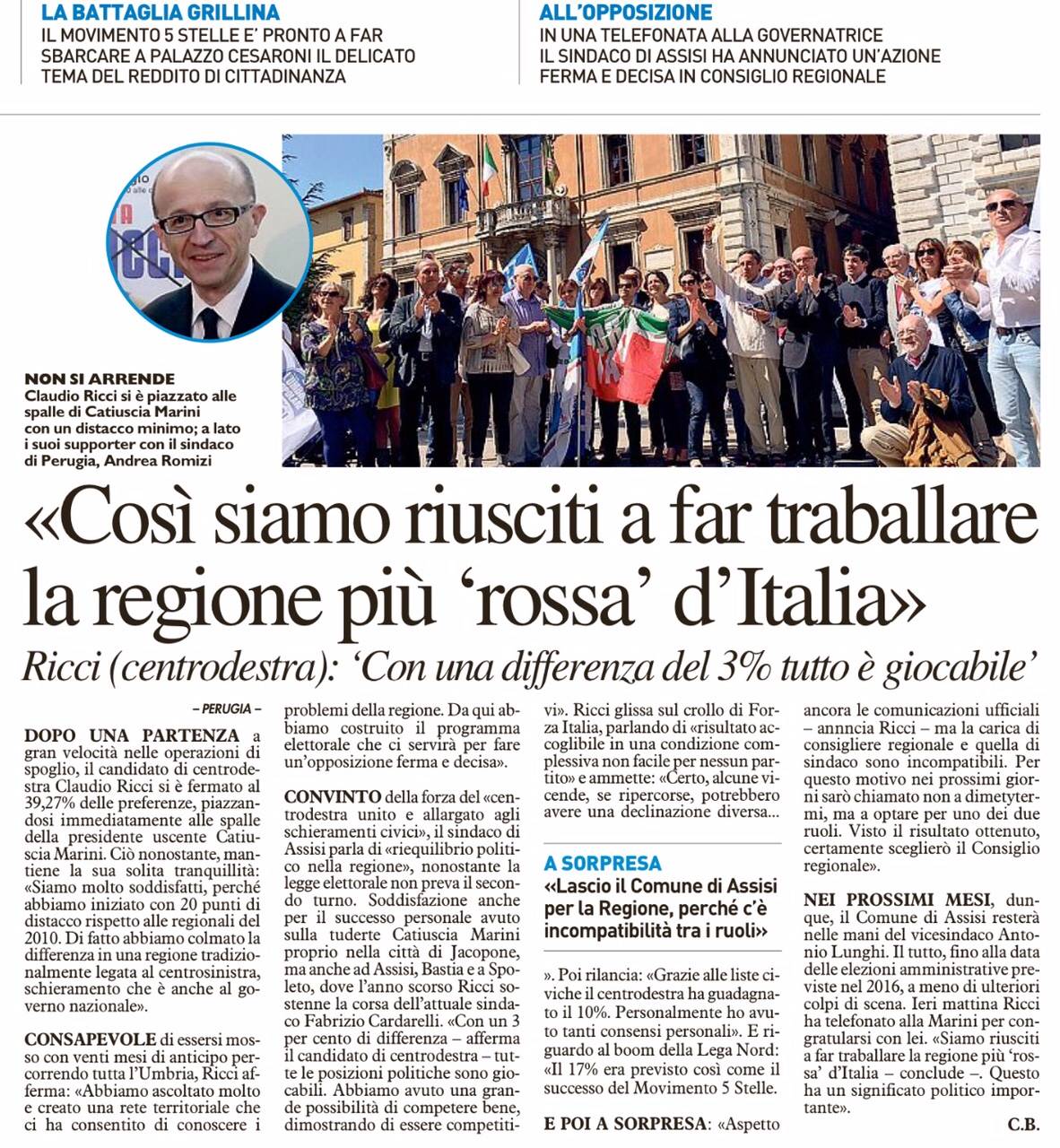 2 Giugno 2015, Claudio Ricci (Sindaco di Assisi) Stamattina ad Agorà RAI TRE (con Gerardo Greco): ha Traballato l’Umbria la Regione Più Rossa d’Italia. Claudio Ricci Redazione subscriber Previous post Il 12-13-14 Giugno Assisi ospiterà al Palaeventi Lyrick il CIPA 2015 "Salone del confezionamento e imbottigliamento del prodotto alimentare". Next postClaudio Ricci (eletto Consigliere Regionale dell'Umbria) Ringrazia Tutti e i Cittadini di Assisi che lo hanno Votato con il 53% di Consensi. Leave A Comment Annulla risposta Salva il mio nome, email e sito web in questo browser per la prossima volta che commento.