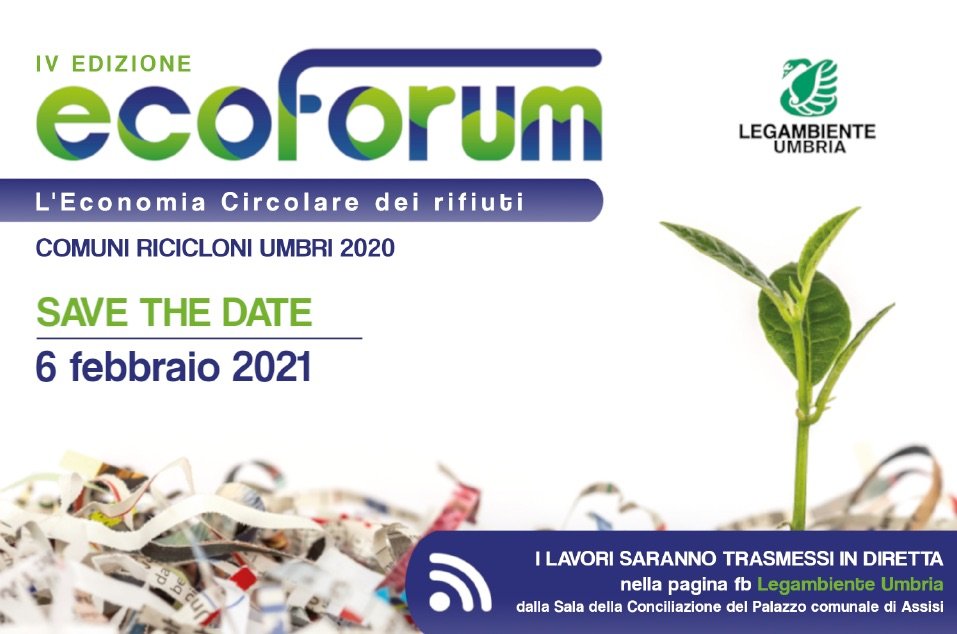 Torna, dopo essere slittato di qualche mese per ragioni legate all’emergenza sanitaria in corso, l’EcoForum sull’economia circolare in Umbria. L’appuntamento, giunto alla sua quarta edizione, analizza casi e numeri legati alla gestione dei rifiuti nella nostra regione. Un’analisi, quella che emergerà dal forum, sia qualitativa che quantitativa, legata a produzione e recupero dei rifiuti, con approfondimenti su quanto di buono viene realizzato nei diversi territori dell’Umbria. L’appuntamento in versione ibrida, con uno studio allestito presso la Sala della Conciliazione nel palazzo comunale di Assisi, dove si alterneranno alcuni ospiti in presenza e molti altri invece collegati via web, ha l’obiettivo di promuovere le buone pratiche che vengono dai Comuni e facilitare la discussione tra gli attori (imprese, istituzioni e cittadini) dell’economia circolare in Umbria. Sarà possibile seguire i lavori collegandosi ai canali social di Legambiente Umbria.