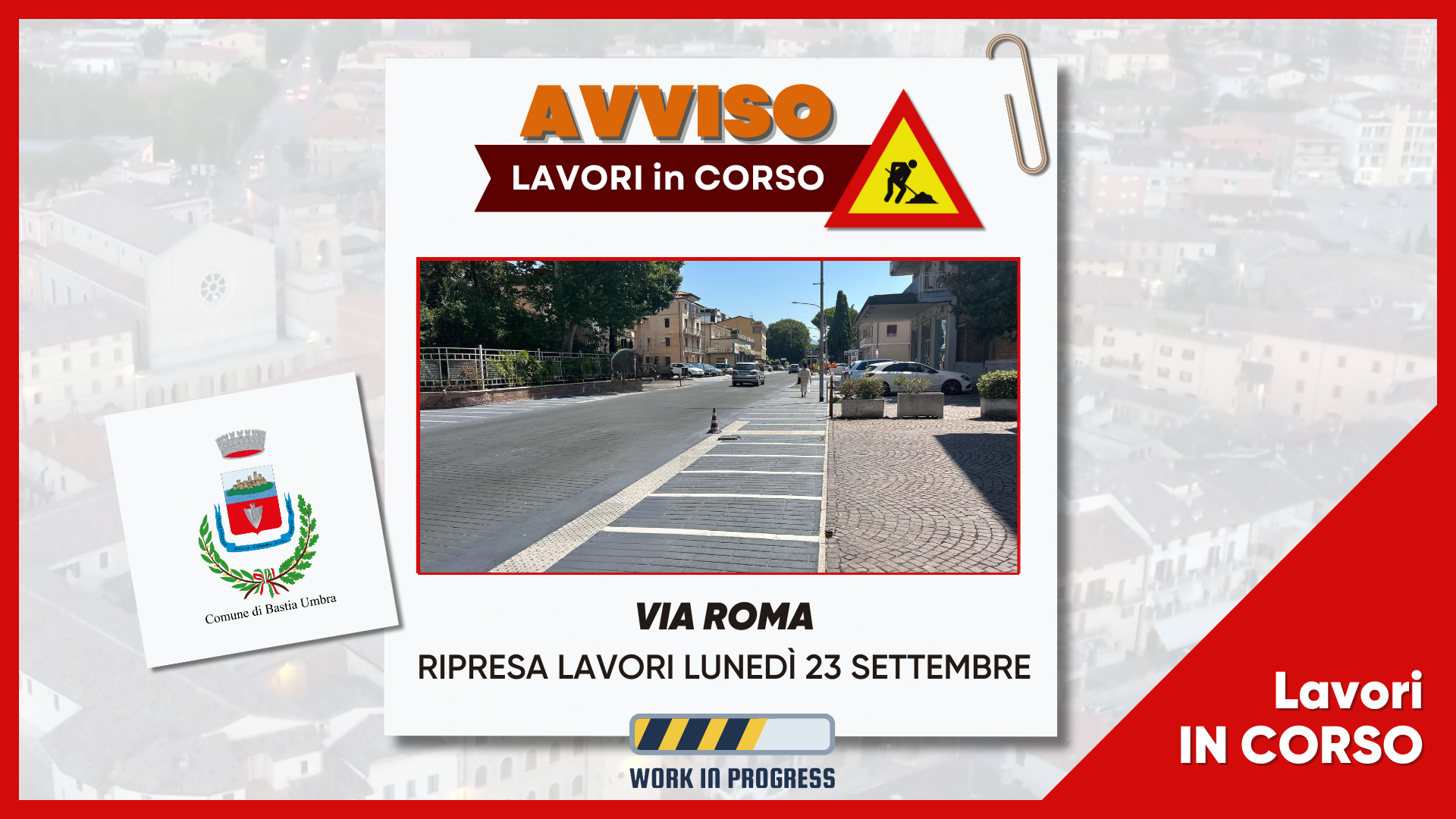Si comunica ai cittadini che da Lunedì 23 Settembre proseguiranno i lavori in corso su Via Roma.