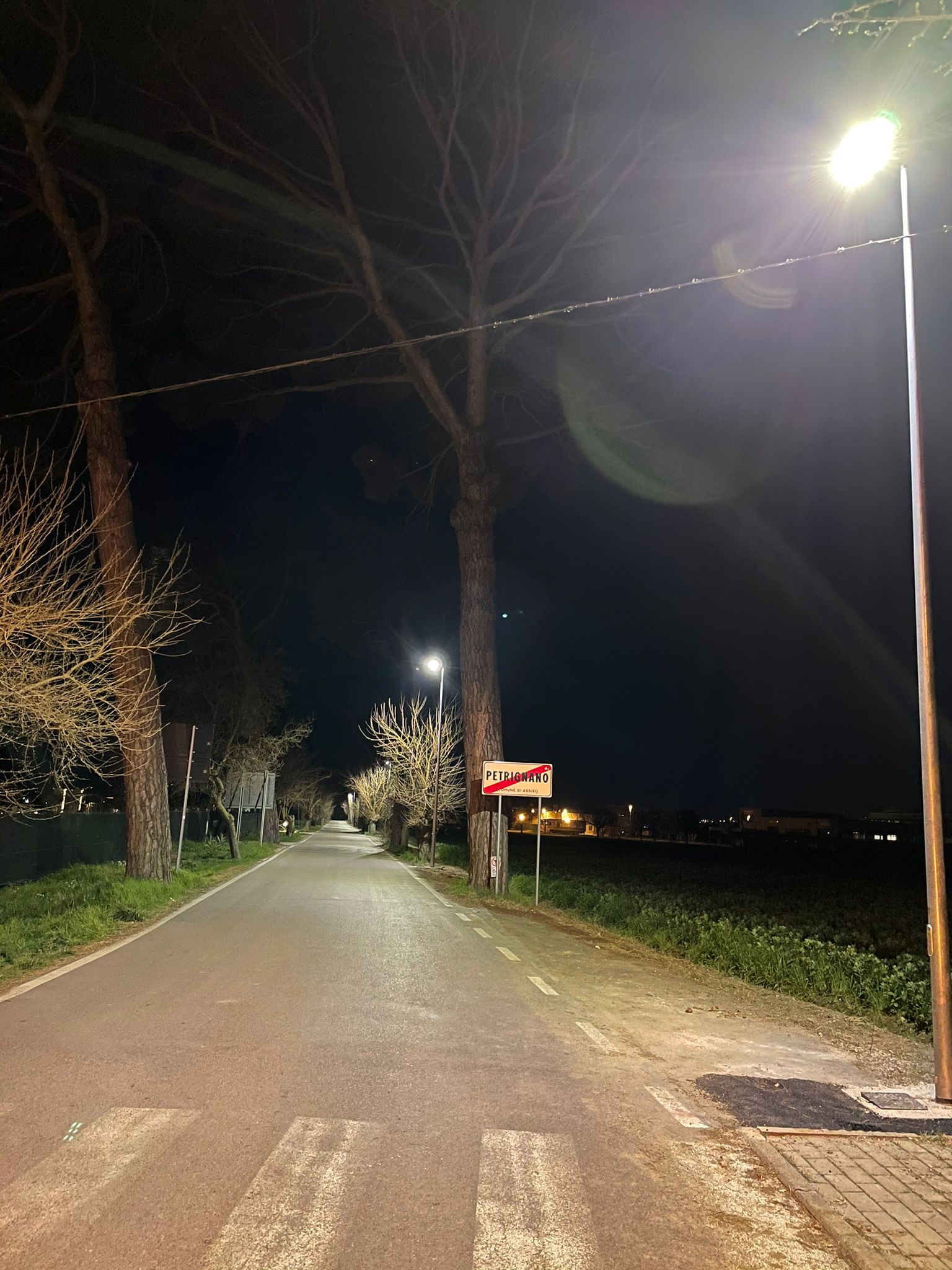 Non si fermano i lavori relativi alla riqualificazione della pubblica illuminazione nel territorio comunale per renderla più efficiente e funzionale. L’ultimo intervento è stato effettuato lungo la suggestiva via dei Pini, a Petrignano, dove sono stati installati 16 pali con plafoniere a led da soli 37 W, sanando così un disagio sopportato per anni da tutti i cittadini della frazione e dalle tante attività che risiedono nella zona industriale; a testimonianza di ciò questo servizio è stato “salutato” con entusiasmo e favore da molti residenti e imprenditori. La pubblica illuminazione, completamente mancante finora sia nella via alberata frequentata da molte persone sia nella strada che conduce alla zona industriale, va anche nell’ottica di una maggior sicurezza sia per i pedoni che per le attività.