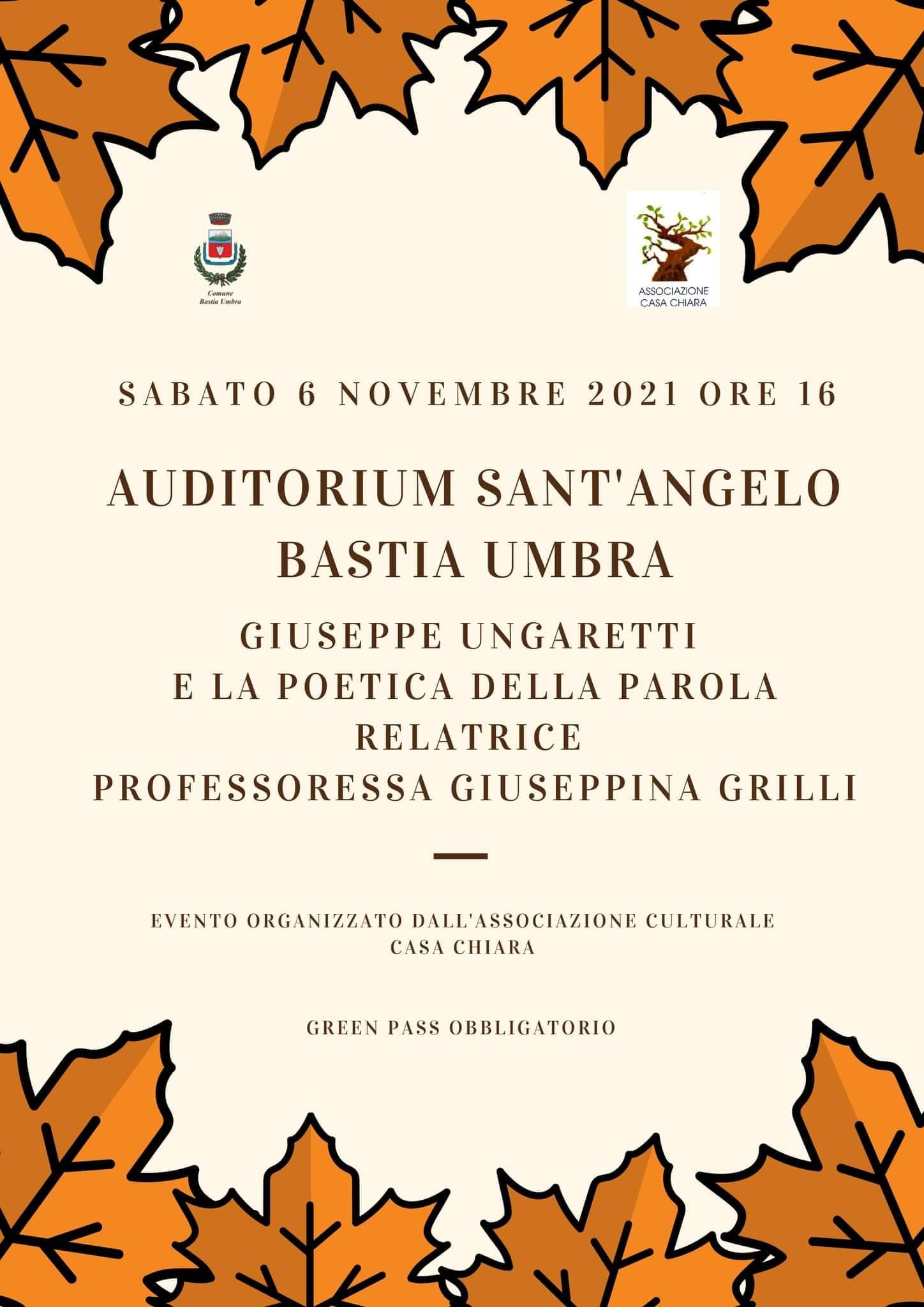 L’associazione Culturale “Casa Chiara” insieme alla professoressa Giuseppina Grilli ci regaleranno momenti di intensa poesia il 6 novembre all’Auditorium Sant’Angelo, con “Giuseppe Ungaretti e la poetica della parola”