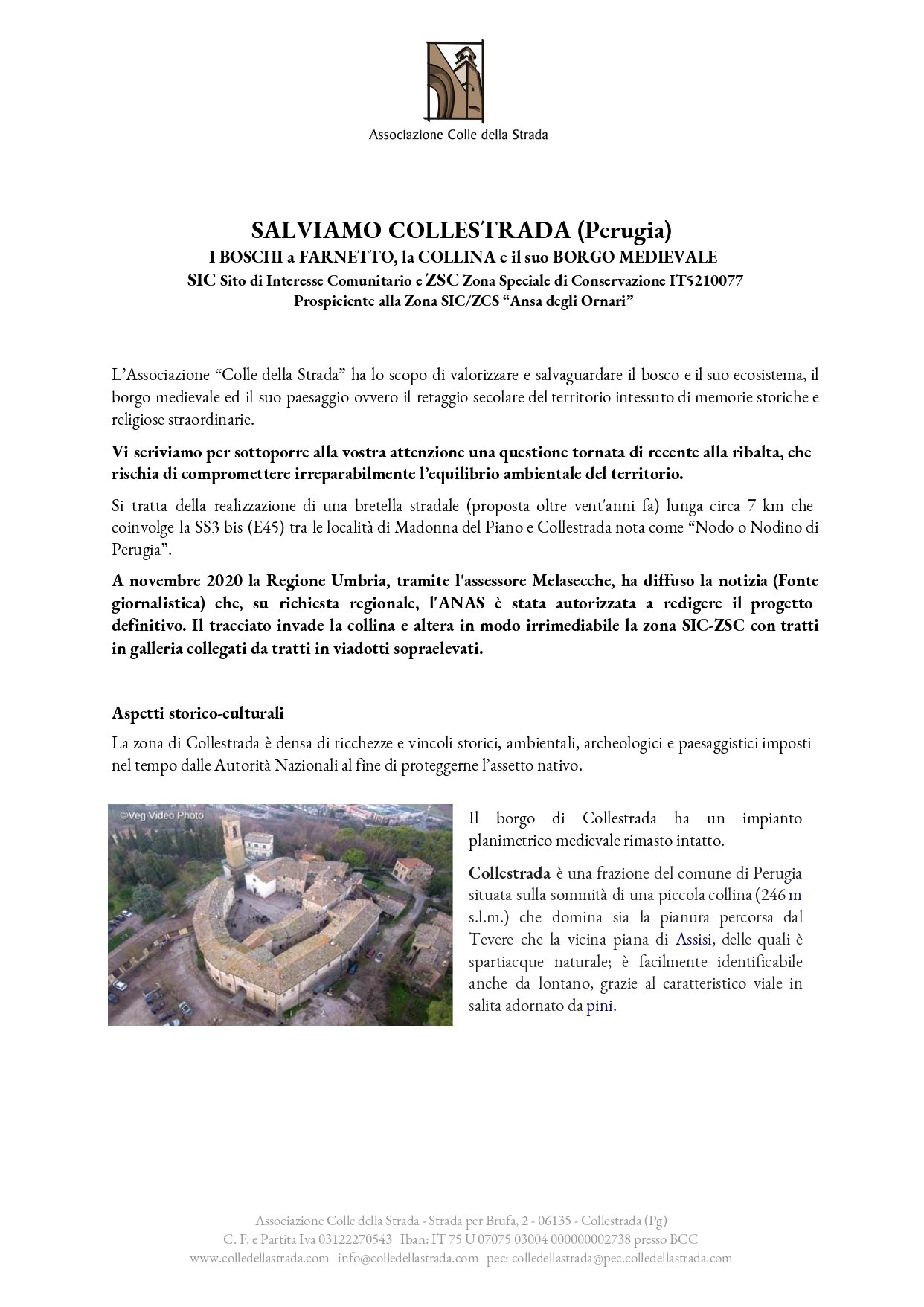 non riusciamo ad evitare di segnalarvi l’insorgere di un importante problematica di carattere ambientale e paesaggistica, che riguarda il borgo medioevale di Collestrada situato tra Perugia e Assisi e il suo bosco (Sito di Interesse di Comunitario / Zona Speciale di Conservazione IT5210077)