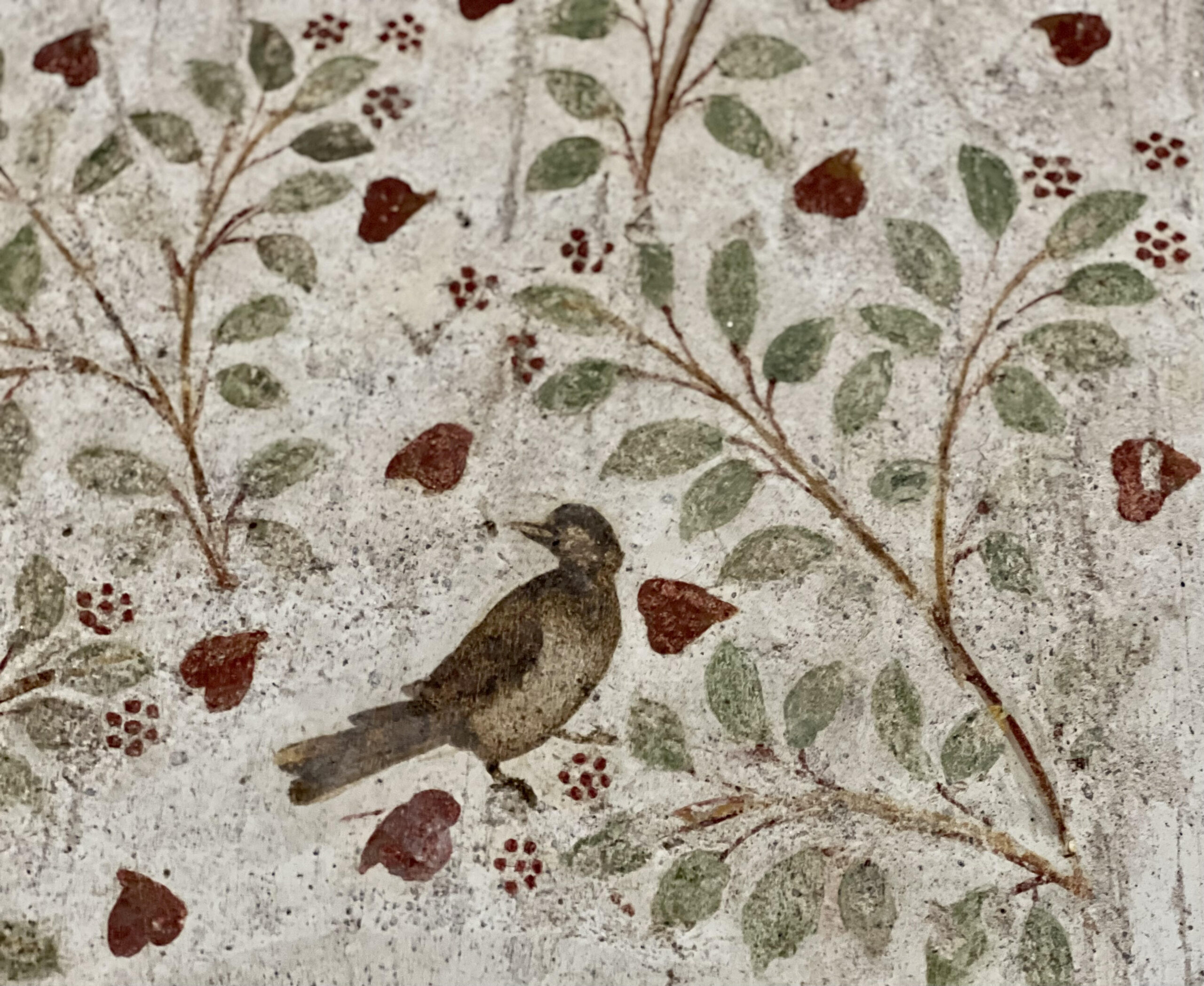 Si tratta di un viridarium, una parete affrescata che rappresenta una sorta giardino immaginario, in cui sono raffigurati ben 96 uccellini, tutti diversi tra loro, tra rami che volteggiano nel nulla, con foglie o petali di fiori a forma di cuoricini. Un’opera speciale, poco conosciuta, che può essere dedicata a tutti gli innamorati nella festa di San Valentino.