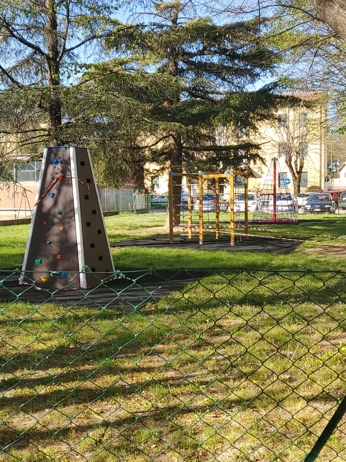 Nell’area verde della scuola primaria Giovanni XXIII sono stati installati una piramide girevole, una palestra cubo e una palestra piramide, e l’intera superficie è stata ricoperta con una pavimentazione anti trauma a impatto ambientale zero. Questo tipo di intervento è costato 20mila euro ed è funzionale alle attività motorie dei bambini, la scelta è stata fatta proprio in raccordo con gli insegnanti. Da ricordare che l’area, oltre che fruibile dagli alunni della scuola, nei momenti in cui la scuola è chiusa, è aperta al pubblico, quindi accessibile a tutti i cittadini.