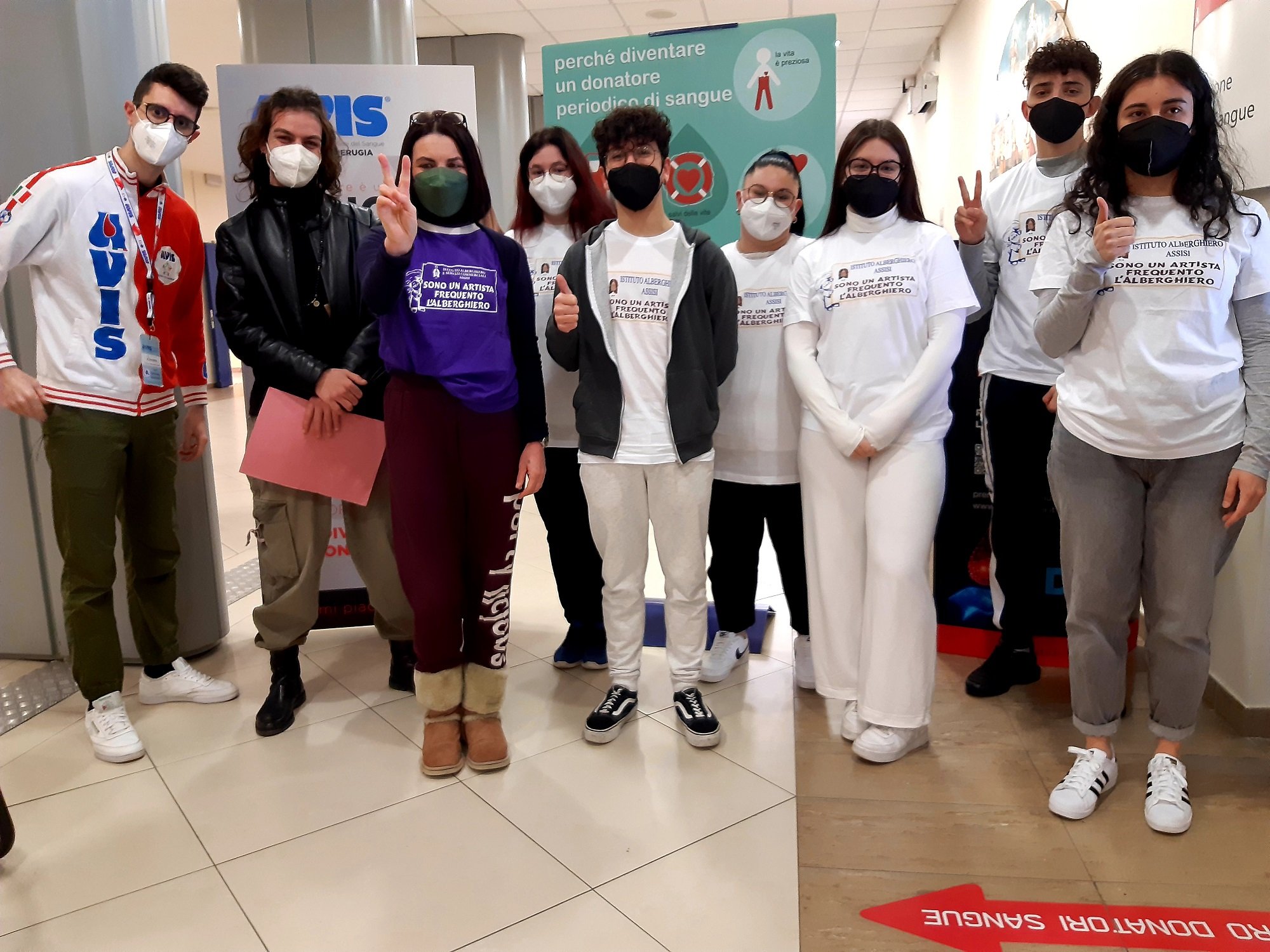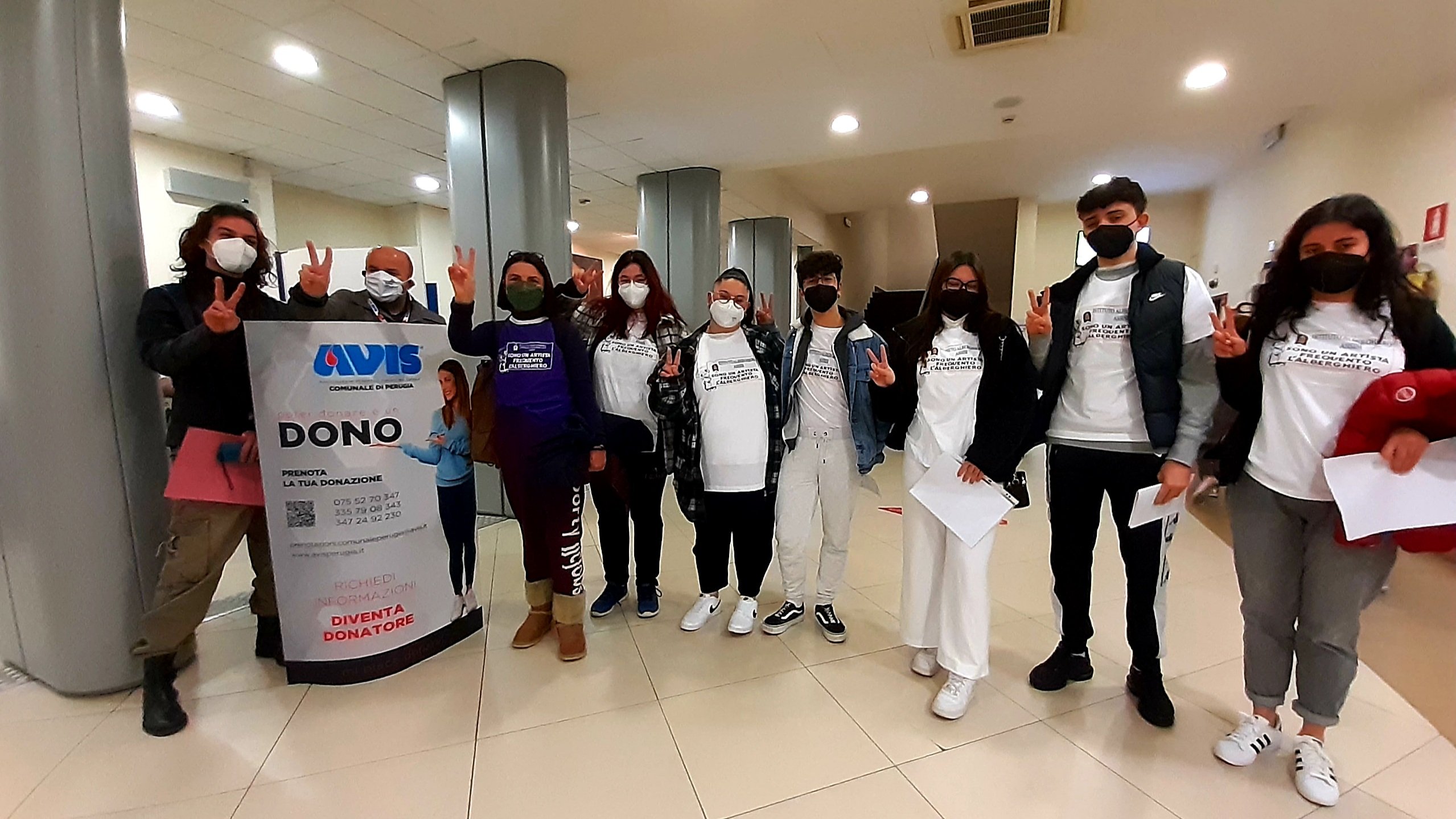Perugia, 3 marzo ‘22 – I ragazzi dell’istituto alberghiero di Assisi donatori per scelta. Accompagnati dalla professoressa Claudia Apostolico della ‘Commissione educazione alla salute’ della scuola, una decina di studenti maggiorenni del quinto anno si sono recati all’Avis comunale di Perugia presso il Il Servizio Immuno Trasfusionale (SIT) dell’ospedale Santa Maria della Misericordia per dare un contributo alla vita con un gesto semplice, non scontato ma che può diventare di vitale importanza per quanti hanno bisogno di sangue.