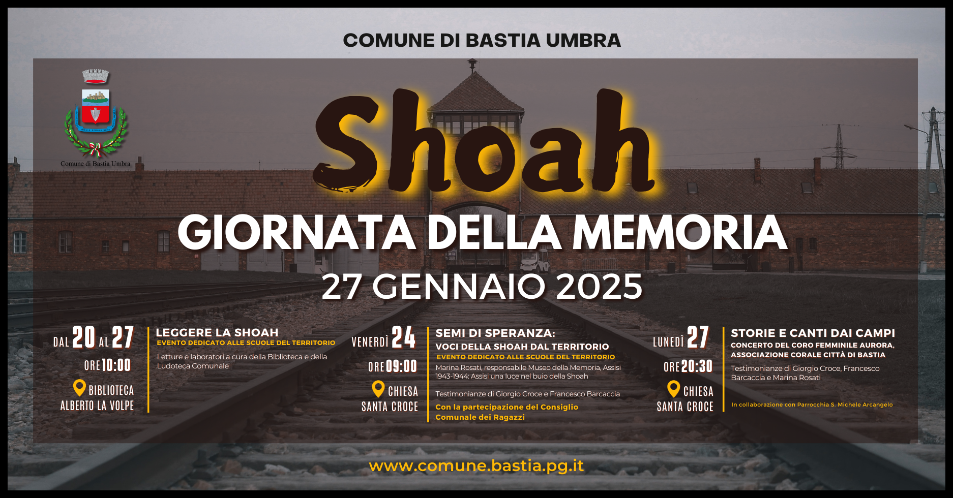 Le iniziative che il Comune di Bastia intende proporre rappresentano un’occasione per riflettere, un momento in cui stringerci in questa riflessione per costruire e alimentare una coscienza collettiva fondata sul rispetto di chi abbiamo accanto. Dal 20 al 27 Gennaio, attraverso testimonianze, canti e approfondimenti, non ci limiteremo ad onorare le vittime dell’Olocausto, ma cercheremo di trasmettere i valori di pace, rispetto e reciprocità alle nuove generazioni, educandole a riconoscere e condannare i segni dell’intolleranza.