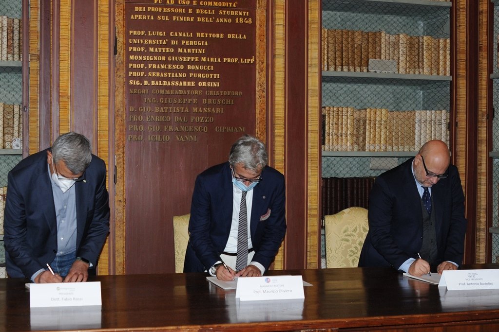 Firmata nel pomeriggio di oggi a Palazzo Murena, la dichiarazione di intenti fra l’Università degli Studi di Perugia, con il Magnifico Rettore, Prof. Maurizio Oliviero, la Fondazione per l’Istruzione Agraria in Perugia (FIA), nella persona del vice presidente, Prof. Antonio Bartolini e Confagricoltura Umbria – Unione Regionale degli Agricoltori Umbri (URA), rappresentata dal presidente Dott. Fabio Rossi.