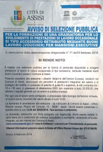 Assisi è l’unico tra i 92 comuni dell’Umbria ad aver introdotto nell’amministrazione pubblica questo strumento che non riconosce più ai lavoratori alcuna dignità. Ma anche ad Assisi, proprio in questi ultimi mesi, tante donne e tanti uomini hanno firmato per il referendum nazionale promosso dalla Cgil per abolire i voucher (1 milione e centomila adesioni in tutta Italia).