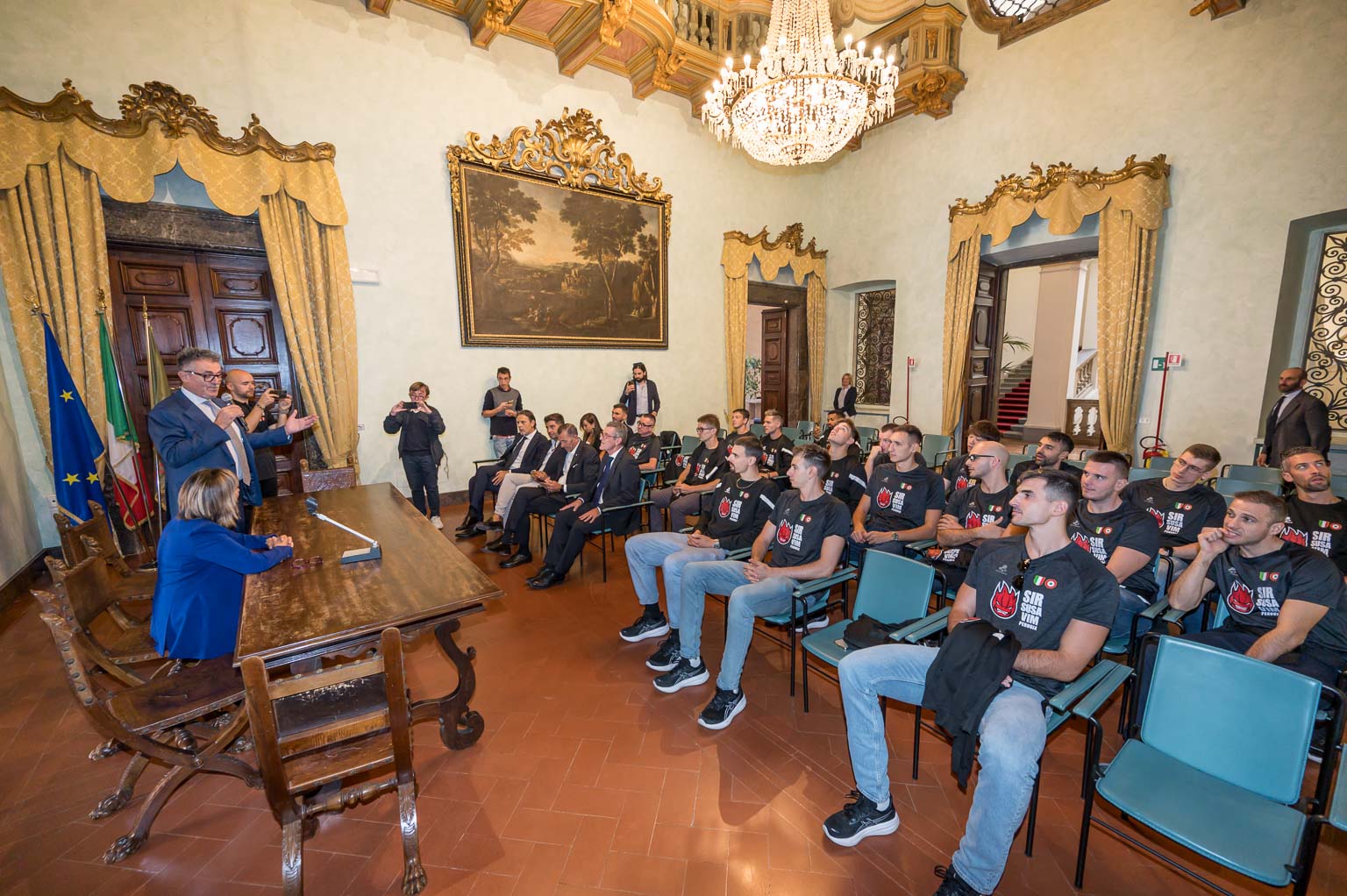 All’interno del salone d’Onore di Palazzo Donini, il più prestigioso dello storico edificio che ospita la Giunta regionale dell’Umbria, il gruppo si è presentato al gran completo, a cominciare dal Presidente del club, Gino Sirci.