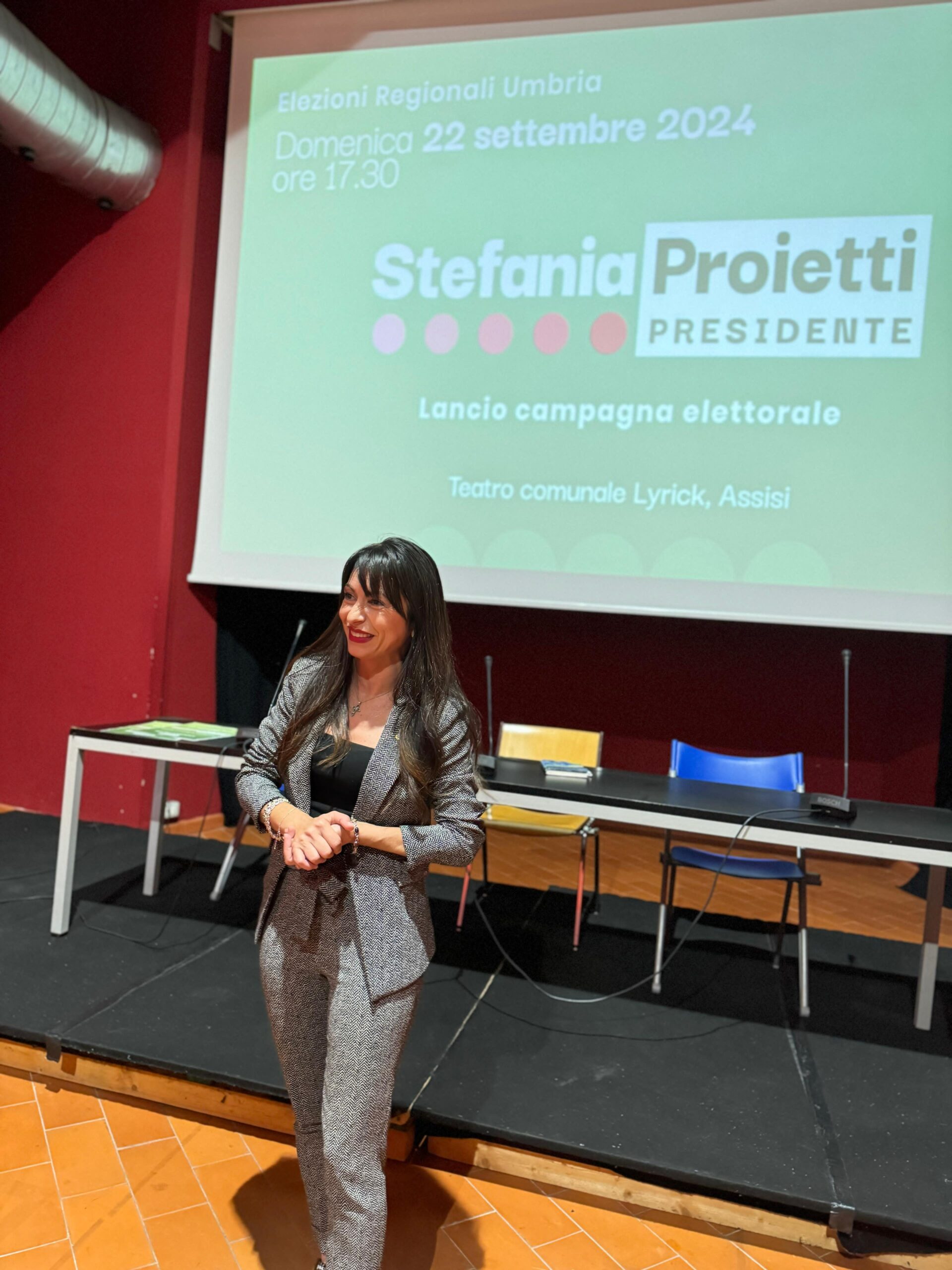 Stefania Proietti presenta al Caos di Terni il lancio della campagna elettorale che partirà domenica 22 settembre al Teatro comunale Lyrick di Assisi per toccare poi tutti i 92 comuni dell’Umbria.