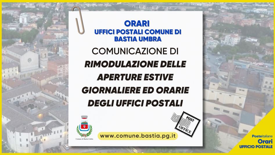 COMUNICAZIONE DI RIMODULAZIONE DELLE APERTURE ESTIVE GIORNALIERE ED ORARIE DEGLI UFFICI POSTALI.