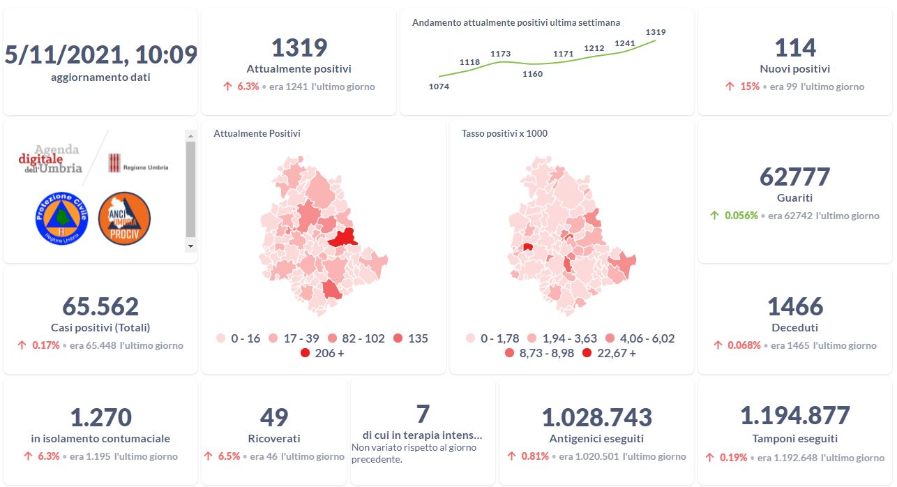 Covid-19 e vaccini, i dati aggiornati al 5 novembre della Regione Umbria.