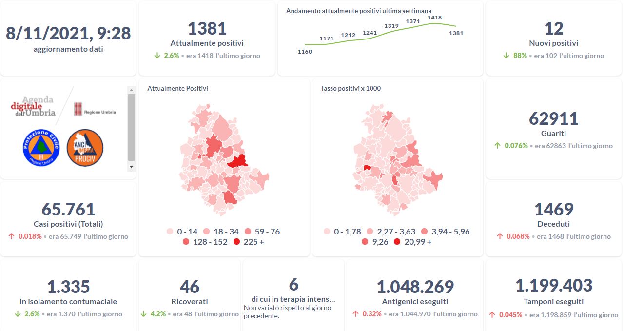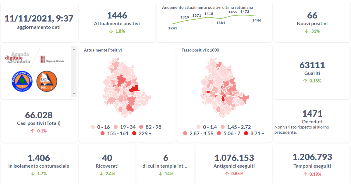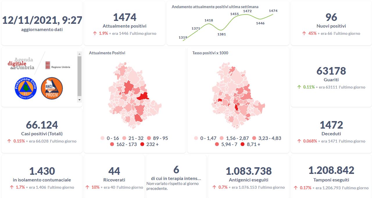 Covid-19 e vaccini, i dati aggiornati al 12 novembre della Regione Umbria.