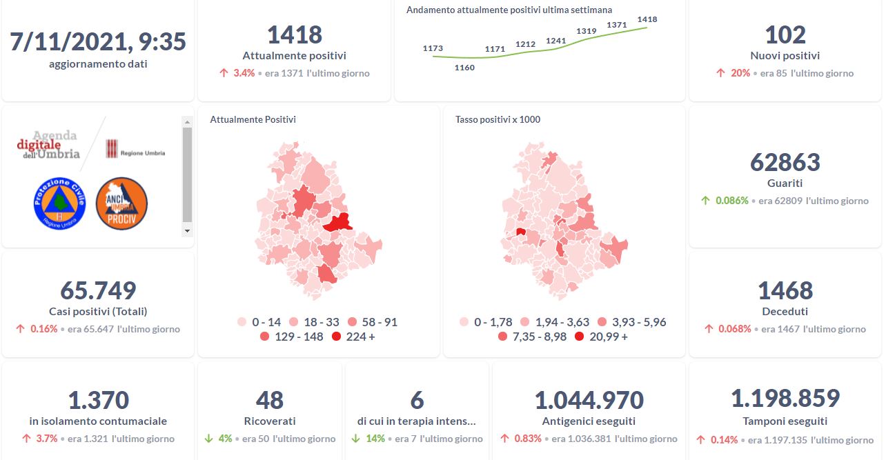 Covid-19 e vaccini, i dati aggiornati al 7 novembre della Regione Umbria.