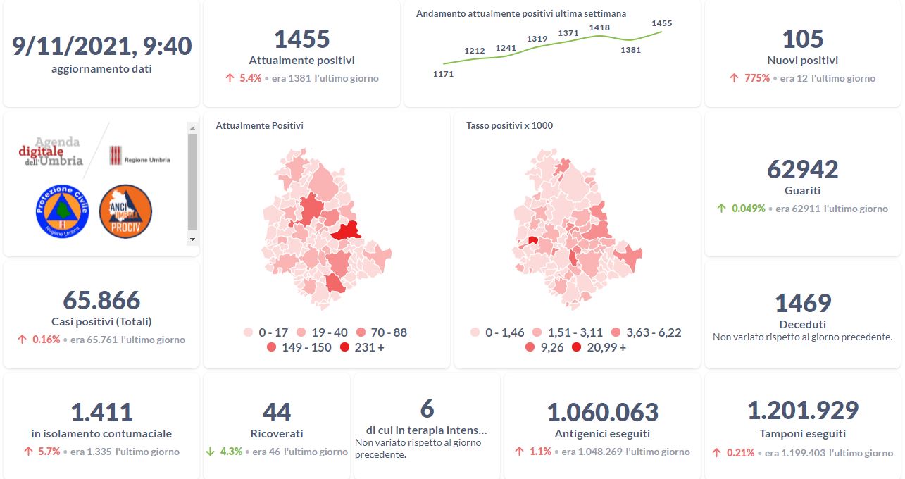 Covid-19 e vaccini, i dati aggiornati al 9 novembre della Regione Umbria.