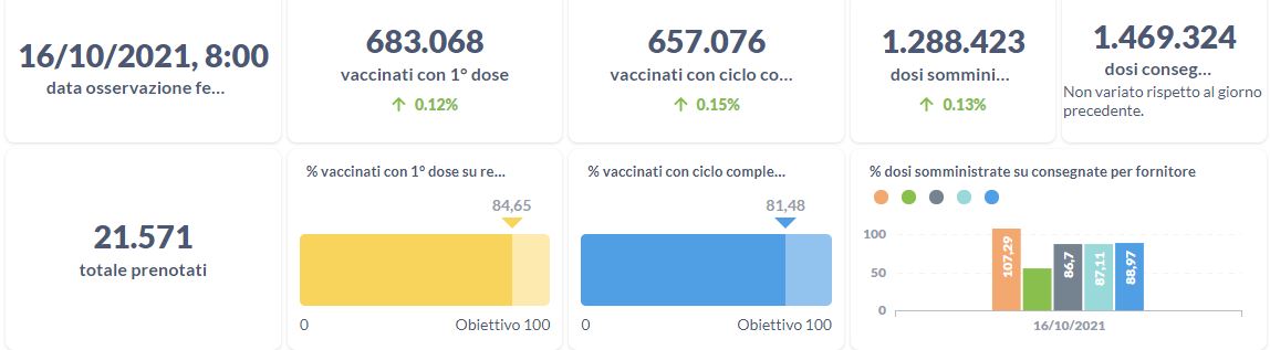 Covid-19 e vaccini, i dati aggiornati al 16 ottobre della Regione Umbria.