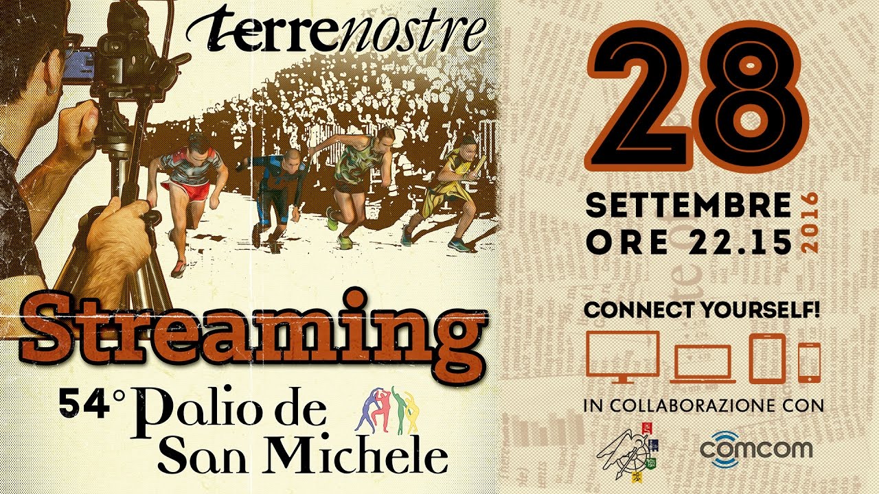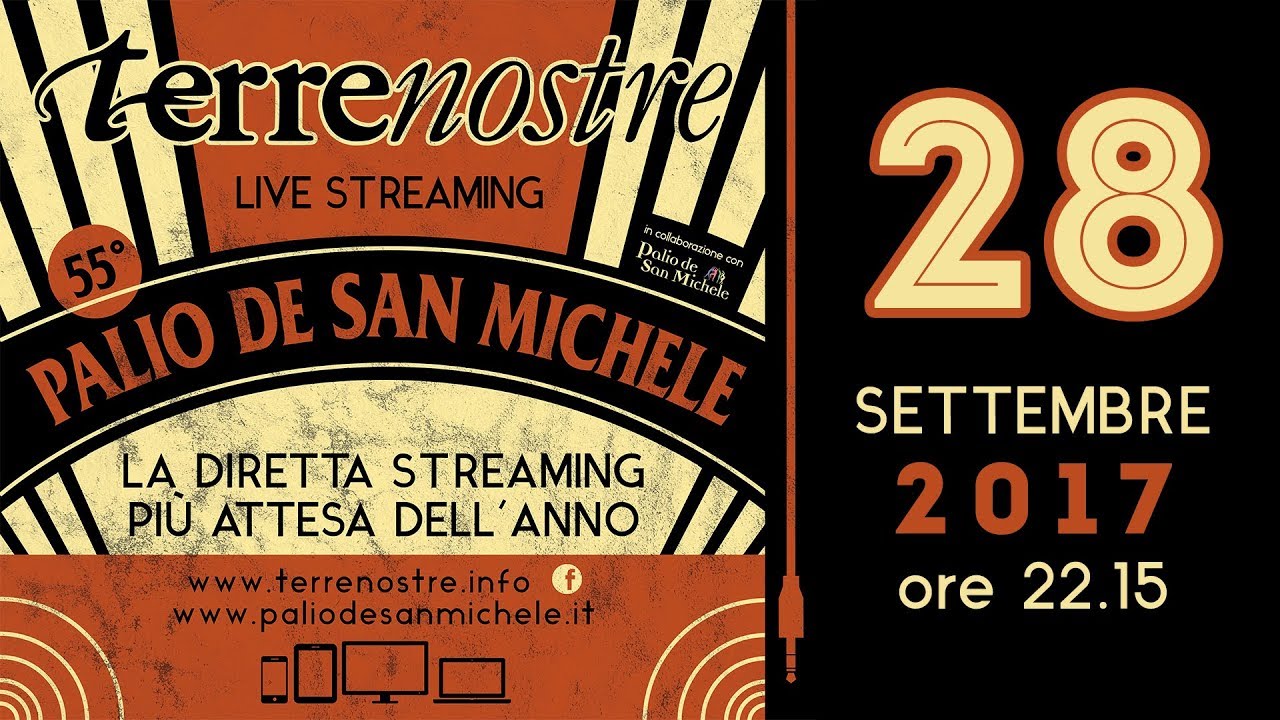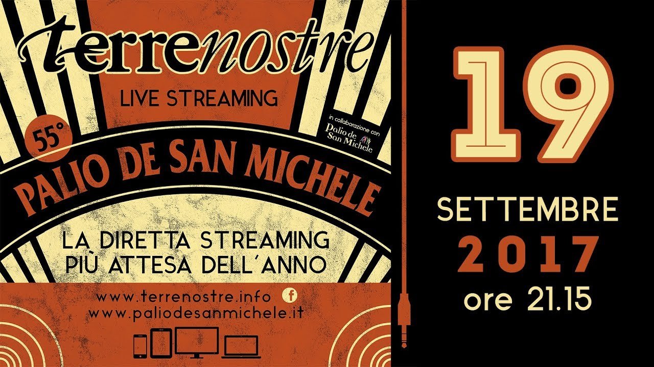 La diretta streaming più attesa dell’anno: 28 Settembre 2017 ore 22.15 – Lizza ed assegnazione Palio 2017 La diretta streaming sarà visualizzabile nella pagina facebook di Terrenostre, su terrenostre.info e su www.paliodesanmichele.it CONNECT YOURSELF!