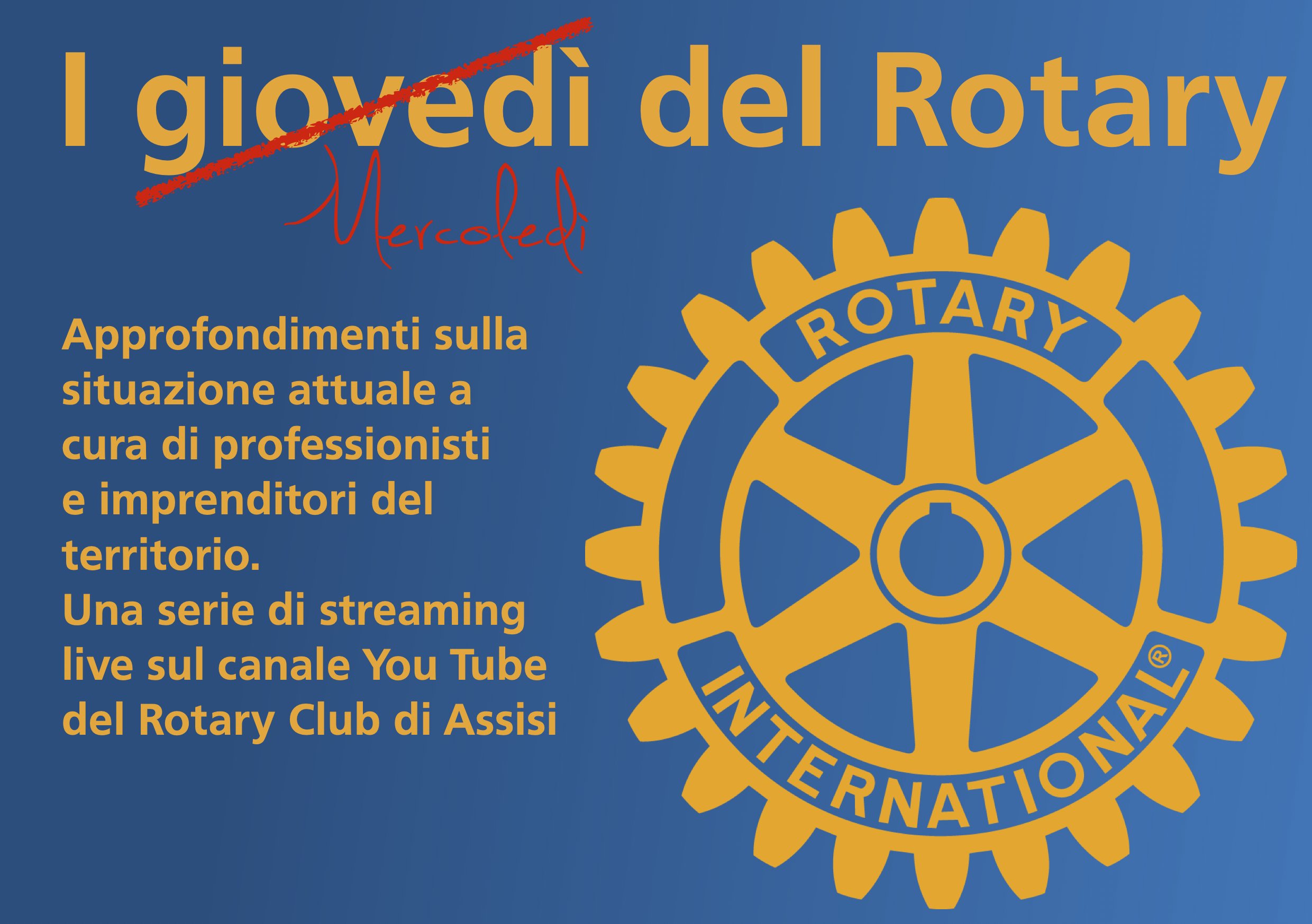 L’appuntamento, quindi, è per mercoledì 8 aprile, alle ore 21, in diretta streaming sul canale YouTube “Rotary Assisi”.