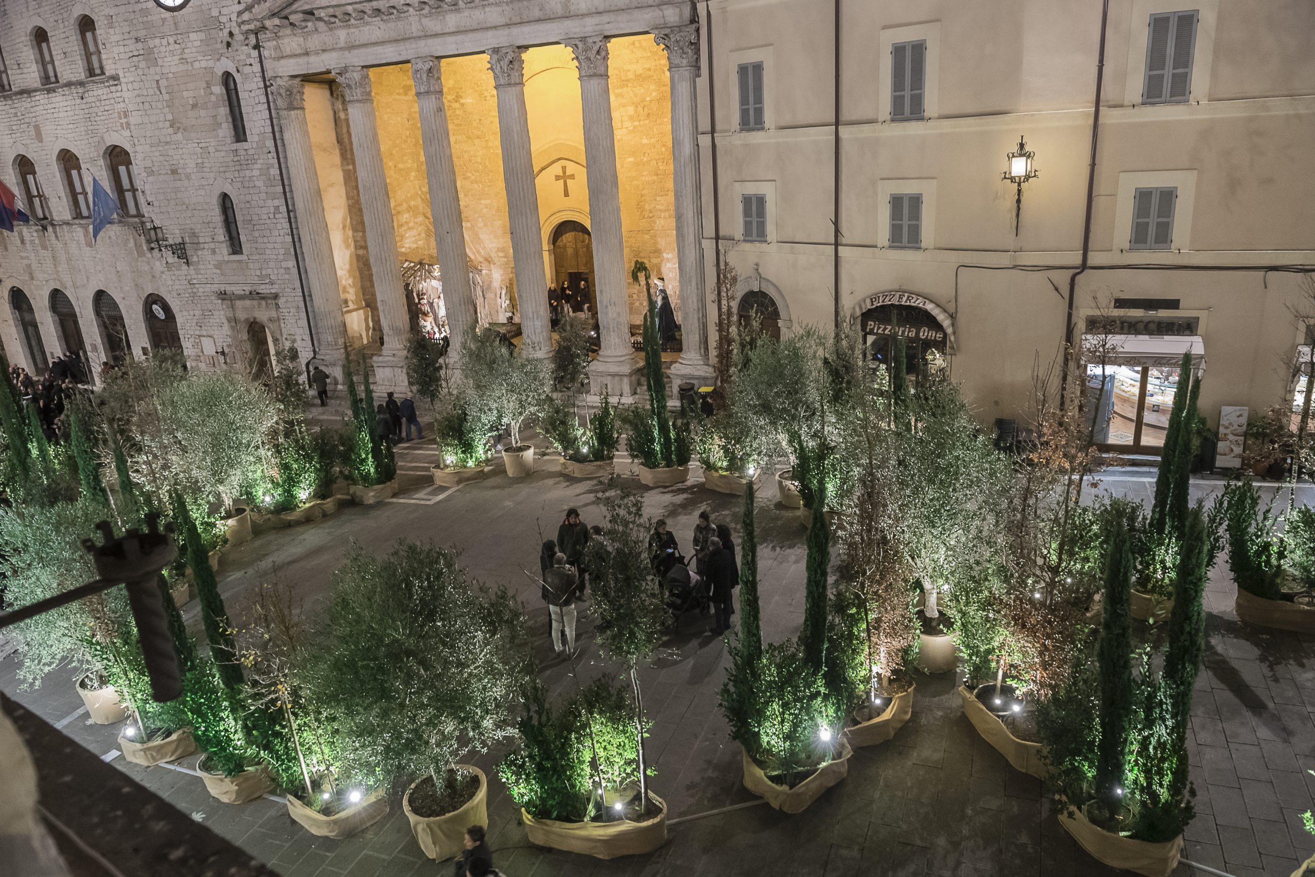 Assisi, 17 dicembre 2019 – Verrà presentato il 19 dicembre ad Assisi il “Terzo Paradiso” di Michelangelo Pistoletto, l’opera che ha ispirato il “Bosco incantato” realizzato per gli eventi del Natale nella piazza principale della città, con circa 400 piante di 14 diverse specie autoctone del monte Subasio, illuminate da luci a basso impatto energetico. L’iniziativa si terrà alle ore 16, in Piazza del Comune, presente il noto artista di origine piemontese che inaugurerà simbolicamente la singolare installazione e illustrerà il significato profondo della sua creazione più celebre. All’incontro interverranno anche il sindaco di Assisi Stefania Proietti, il critico d’arte Enrico Sciamanna e lo storico dell’arte Giulio Proietti Bocchini.