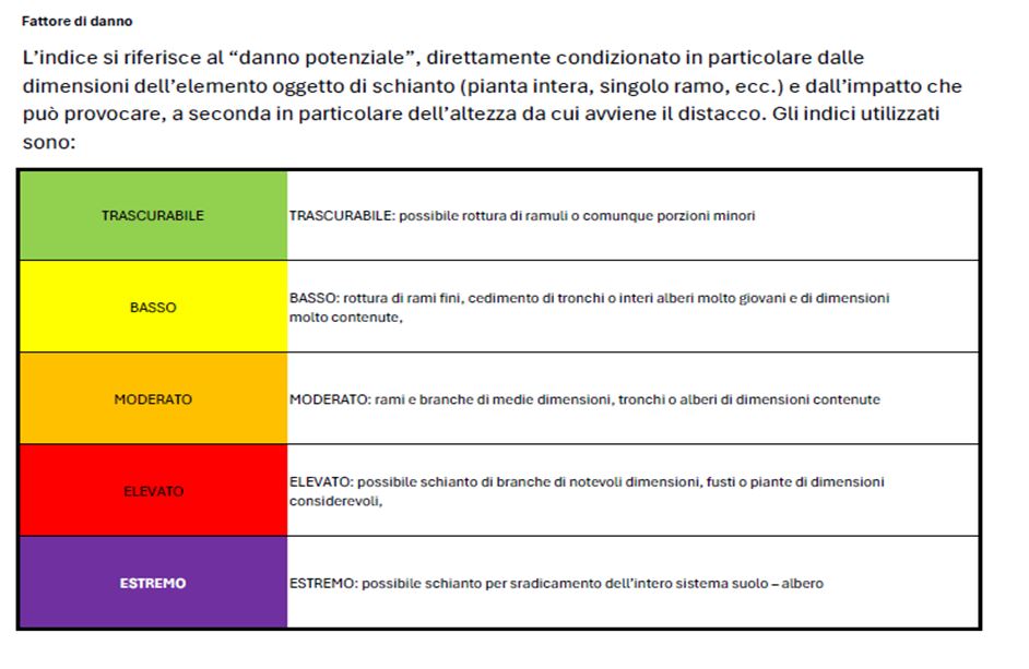 La relazione, che si compone di 94 pagine e contiene 22 schede di verifica dei pini, evidenzia per ciascun albero il grado di rischio, il fattore di danno e il fattore di contatto, restituendo un quadro molto chiaro ed esaustivo sulla situazione di ogni singola pianta. La classificazione del grado di rischio è risultata essere per 4 pini “D-Estrema”, per 5 “C/D- Elevata” e per i restanti 12 “C – Moderata”. Il fattore di danno per tutti è risultato “Estremo” e quello di contatto è classificato per 20 pini come “Elevato” ed “Estremo” per 2.