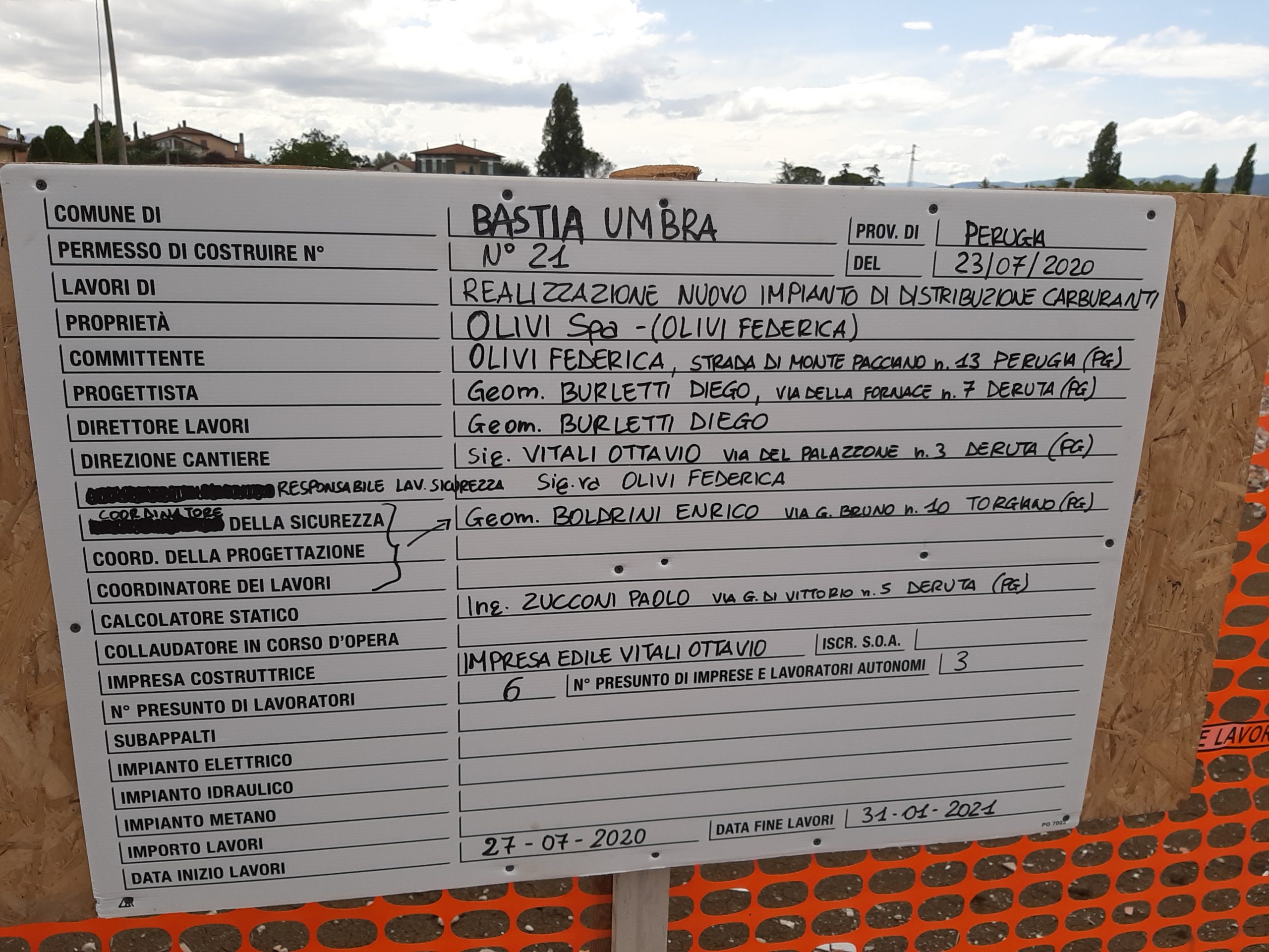 In data 23. 07.2020 il comune di Bastia ha rilasciato un permesso a costruire per la realizzazione di un nuovo impianto di distribuzione di carburanti alla ditta Olivi spa di Deruta, in località Fonte del Lupo, nella strada che unisce il capoluogo alla frazione di Costano, i cui lavori sono iniziati in data 27.07.2020. Si fa presente che tale impianto, da quanto di può osservare, avrà grandi dimensioni e sorgerà a breve distanza, qualche decina di metri, da due curve pericolose, come segnalato dai cartelli stradali. In base a quali norme o regolamenti è stato dato il permesso di costruire in una zona agricola di pregio, che sconvolgerà un luogo storico del paesaggio rurale, abitato per secoli da famiglie che non l’hanno mai abbandonato e ancora vi risiedono? Perché si è scelto di distruggere un angolo del nostro territorio rimasto libero dai capannoni della zona industriale che lì proprio si arresta e si è invece continuato a invadere quanto rimaneva libero? Non conta più nulla la tutela della tranquillità delle persone, l’amenità dei luoghi, che verranno cementificati e coperti dall’asfalto, sfigurando un paesaggio secolare che invece andava tutelato? Una grave forzatura che porterà anche una prevedibile pericolosità a chi percorre quotidianamente quella strada. Inoltre è stata mai data informazione ai cittadini di questa novità urbanistica di grosso impatto ambientale? Dobbiamo sapere tutto a cose fatte, come fu, non molti anni fa, per il biodigestore di Costano?
