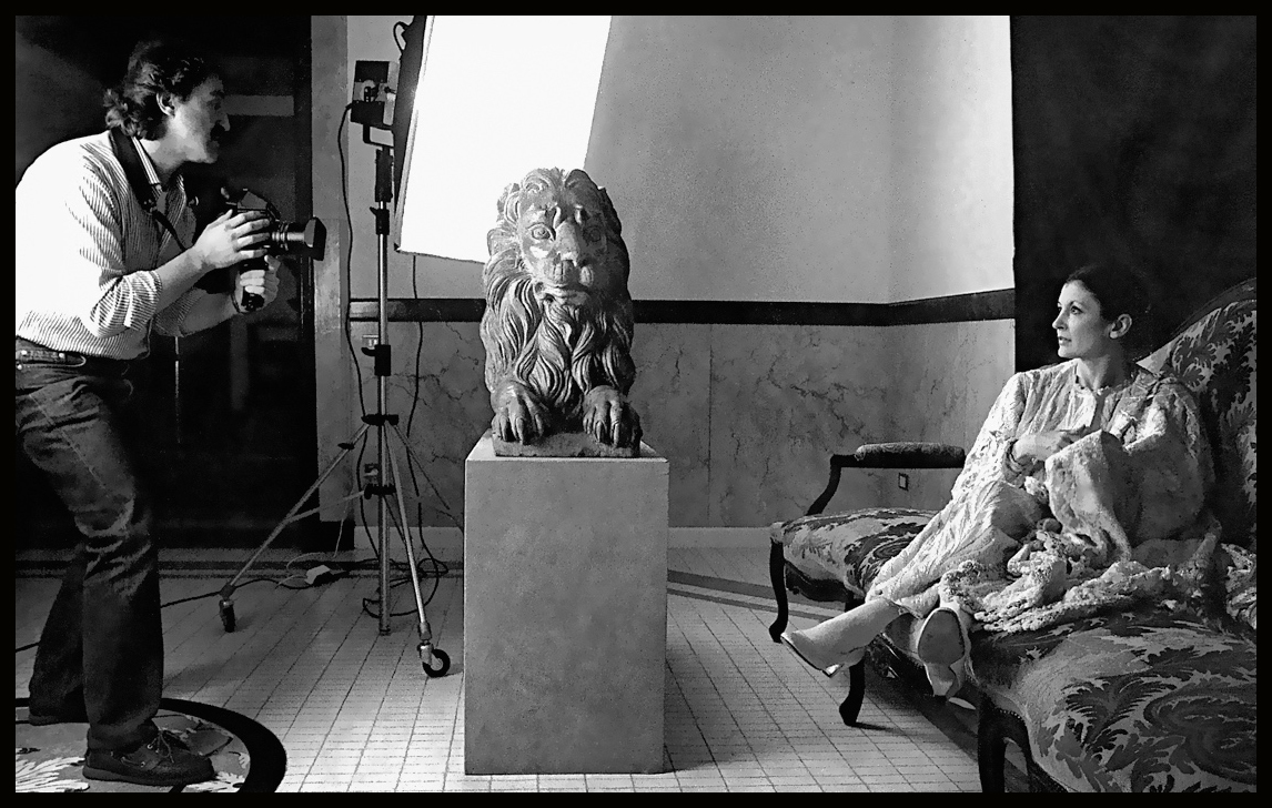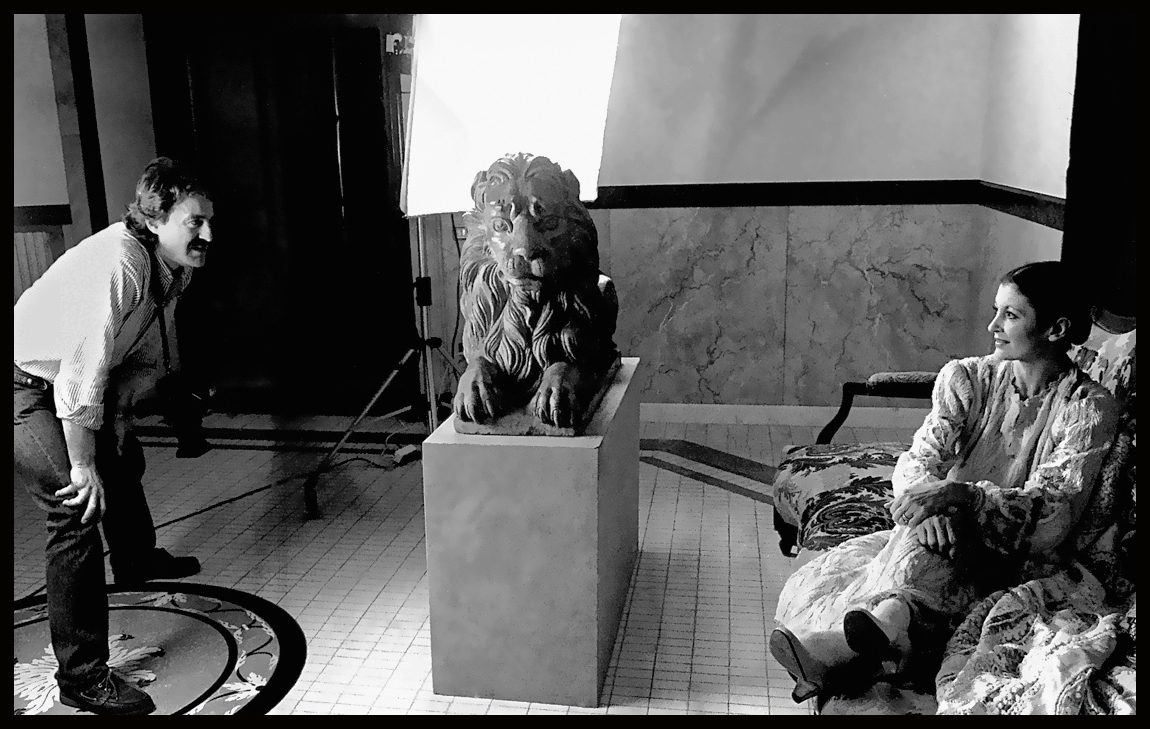 “Sono passati diversi anni, ma il ricordo di quell’incontro, la memoria di quel momento magico resterà per sempre. Erano i primi anni novanta, per essere precisi il 1991 e da poco era uscito in tutte le librerie il libro “Napoli Donna”, con i miei ritratti di trentasette importanti donne napoletane, accompagnati dalle interviste della giornalista Giuliana Gargiulo. Avendo avuto un notevole riscontro, io e Giuliana decidemmo di realizzare un altro libro, stavolta sulle donne di Milano, libro che però per vari motivi non fu mai pubblicato. Preparammo allora una scaletta di nomi illustri e la prima della lista era Carla Fracci. Il caso volle che dopo neanche un mese la stupenda ballerina insieme al marito Beppe Menegatti venissero a Napoli proprio da Giuliana che li ospitò. Ricordo bene infatti che la conobbi ad una cena in casa sua. Le proposi di partecipare al progetto e lei ne fu subito entusiasta. Era andato tutto bene… però la Fracci sarebbe rimasta a Napoli pochi giorni, io dovevo subito trovare una location e soprattutto decidere come fotografarla. Cominciai allora a documentarmi e a cercare…. leggendo la sua biografia capii dalla data di nascita che il suo segno zodiacale era il leone, un segno che le calza a pennello; infatti io l’ avevo sempre considerata una donna molto forte, una vera guerriera, caratterialmente e professionalmente. Mi ricordai allora che a casa della mia amica Valeria Carità, in un antico palazzo a Monte di Dio, avevo visto un grande leone di pietra. Immediatamente organizzai tutto e il giorno dopo io e la Fracci ci recammo in quella lussuosa casa. Lei era bellissima, delicata ed eterea come una porcellana cinese e indossò lo stupendo vestito merlettato che si vede nella foto. Dopo qualche prova e pochi scatti capii che avevo la foto giusta. Finalmente potevo rilassarmi. Passammo un po’ di tempo a chiacchierare e poi la riaccompagnai. La rividi a Milano perché venne ad una mia mostra fotografica al “Diaframma” in via Brera. Le diedi il suo ritratto e lei subito mi disse: ” Bella…..e poi il leone è il mio segno zodiacale”, capii di aver fatto centro.”