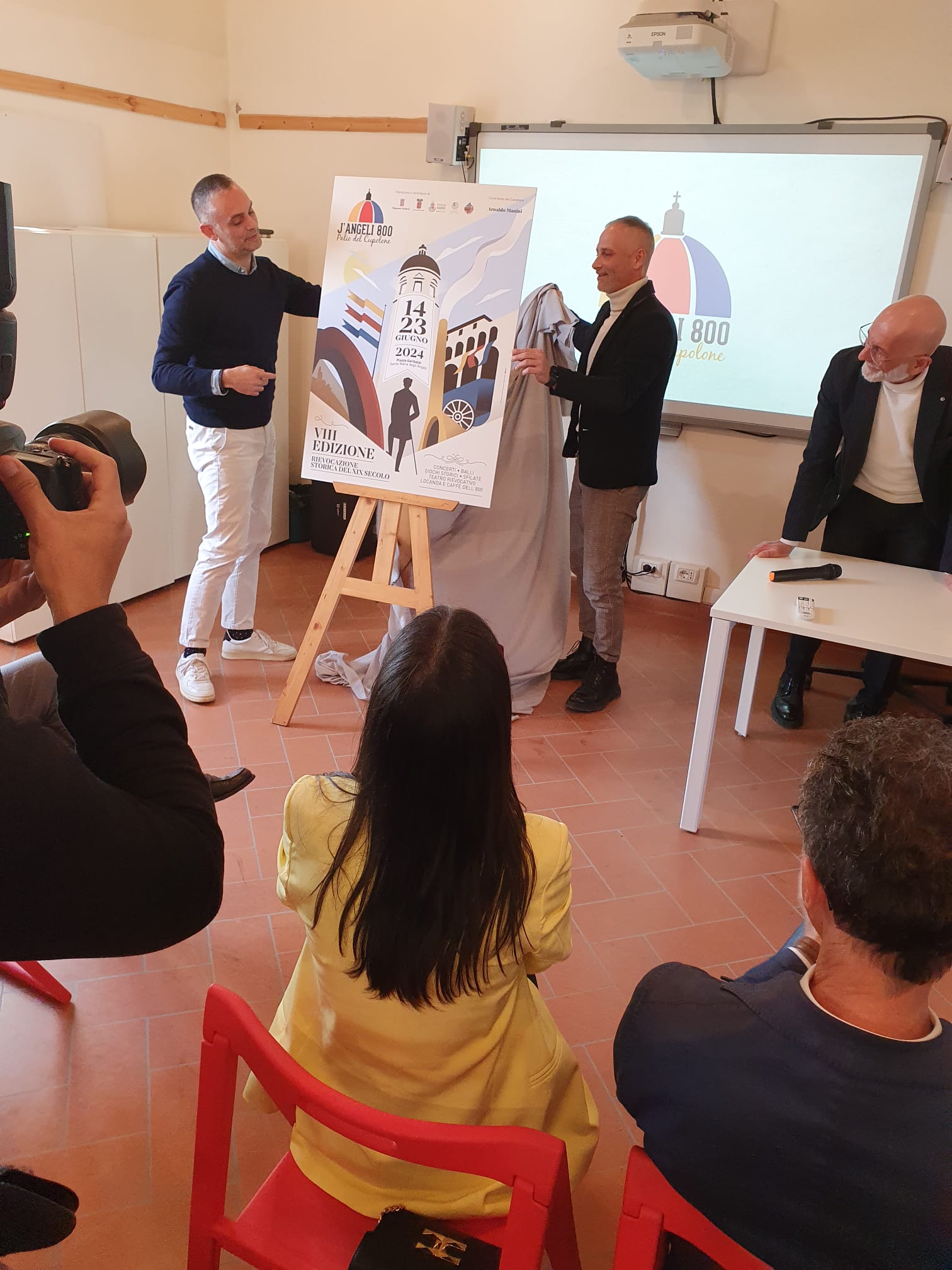 A scandire l’avvicinarsi della festa, sono già in programma i primi appuntamenti. Quindi, mano al calendario per non perdervi nessuno degli eventi che ci traghetterà verso il Palio. Primo fra tutti la presentazione ufficiale del nuovo visual, che si è tenuta domenica 21 Aprile, presso il Palazzo del Capitano del Perdono. A presenziare l’evento il Direttore Artistico Susanna Tartari, al suo secondo anno al timone della Rievocazione Storica Angelana, e i rappresentanti dell’Ente Palio 2024, guidato dal presidente Moreno Massucci e dal coordinatore Gianluca Bartolucci. Quest’anno l’immagine simbolo che ci accompagnerà per tutta l’edizione è stata realizzata da un illustratore del team dell’agenzia FMT, azienda del territorio, consolidata ormai da anni nell’ambito della comunicazione.