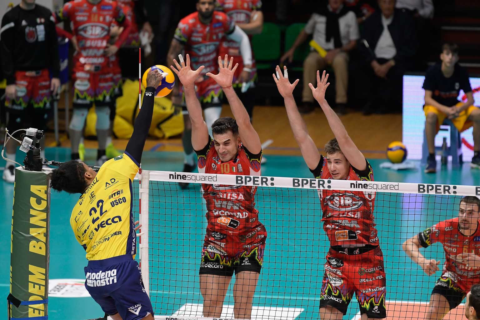 Un rotondo 3-0, conquistato nel “Tempio del Volley”, in una serata particolare per la Sir Susa Vim Perugia che, a scopo precauzionale, è scesa in campo senza Yuki Ishikawa, con Nicola Cianciotta dal primo minuto. Un palazzetto pieno con il pubblico di casa a spingere la propria squadra, ma con i tifosi di Perugia che hanno risposto presente, facendo sentire la loro voce e il loro supporto a tutta la squadra. Tanti fattori hanno reso particolarmente gustosa la vittoria dei Block Devils contro la valsa Group Modena. Coach Angelo Lorenzetti, dopo il tiebreak di domenica scorsa alla Kioene Arena, aveva chiesto ai suoi ragazzi un’attenta riflessione e la risposta è arrivata subito: la squadra ha dimostrato grande concentrazione, capacità di rimanere lucida nei momenti caldi e limando gli errori. Il gruppo ha chiuso il match con un 52% in attacco, 9 muri e 6 ace in tre set.