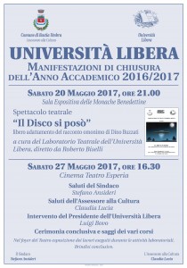 La cerimonia finale si terrà sabato 27 maggio al Cinema Teatro Esperia con i saluti delle autorità e la relazione del presidente dell’Università Libera Luigi Bovo.