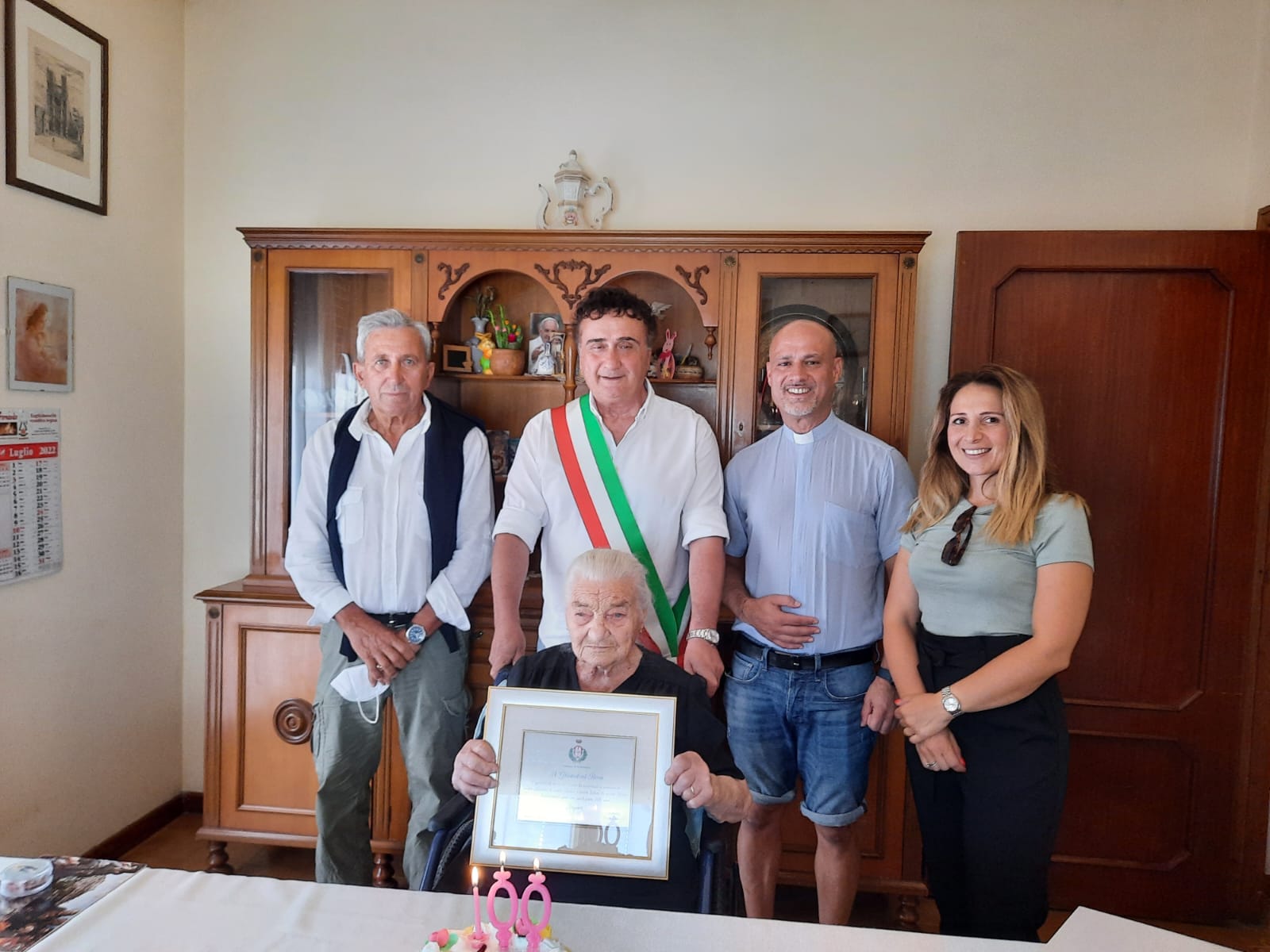 Valfabbrica, 8 luglio ‘22 – Rosa Ghiandoni, nata a Gubbio il 9 luglio 1922, spegne 100 candeline e insieme a lei, per festeggiare questo importante traguardo, si stringono anche il sindaco di Valfabbrica Enrico Bacoccoli, il parroco don Antonio Borgo, il vicesindaco Venanzio Chiappini e la consigliera comunale Silvia Cozzali.