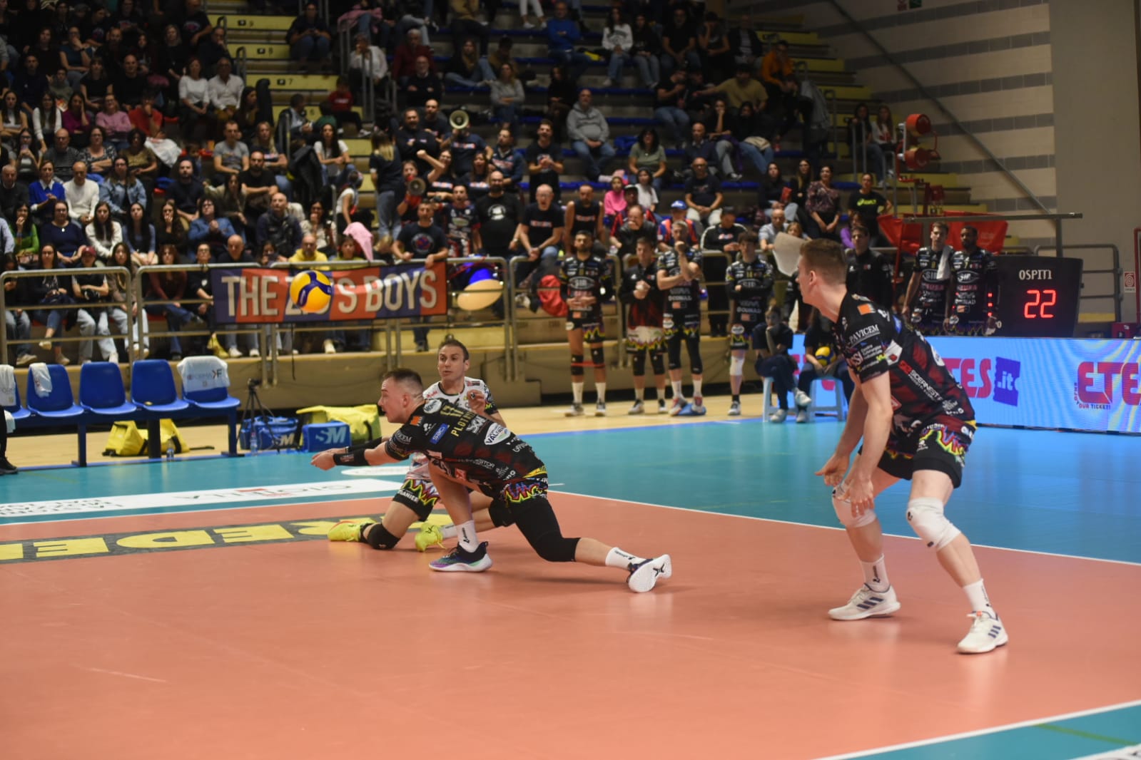 I padroni di casa partono più compatti nella seconda frazione alzando il muro. Plotnytskyi trova il varco, poi con un ace allunga 3-8 e coach Boninfante chiama il time out. Al rientro in campo D’Heer va a segno in diagonale, ma al servizio spreca. Muro di Ben Tara, attacco vincente di Tim Held, primo tempo di Russo, servizio out di Gironi, ma è Perugia a mantenere le distanze e Ploynyskyi chiude lo scambio lungo del 7-18.