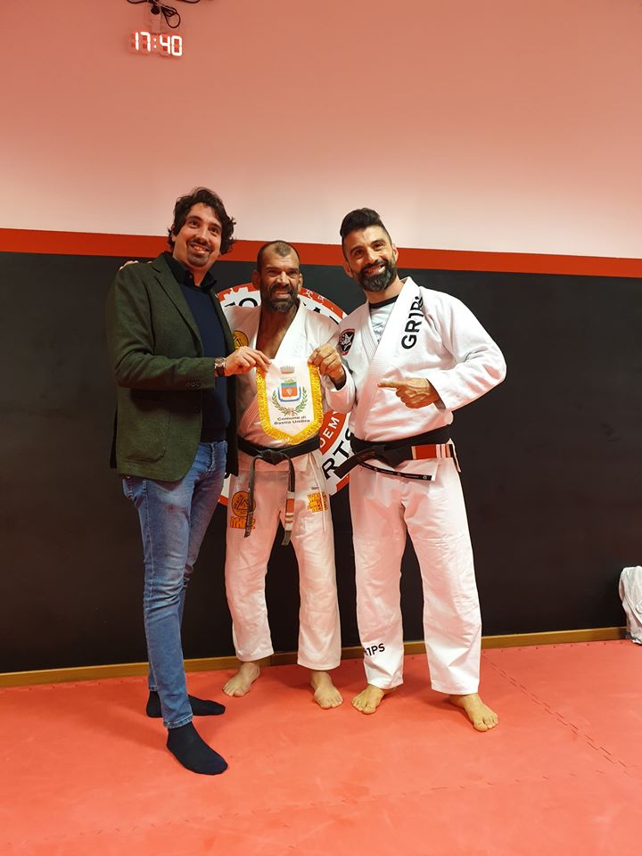 BASTIA UMBRA – Sabato pomeriggio è andato in scena il grande Jiu Jitsu brasiliano (BJJ) alla Sestito Academy di Bastia Umbra con il pluricampione Wellington “Megaton” Dias, cintura nera 6° grado e rappresentante della leggendaria scuola dei Gracie Humaità a Rio de Janeiro. Dias è soprannominato “Megaton” per la sua propensione in combattimento a lanciare i suoi avversari in alto. Tantissimi i suoi successi agonistici, tra i quali ricordiamo la sua partecipazione a tutti i 24 campionati mondiali di BJJ sin dal 1996, dove ha riportato diverse vittorie e piazzamenti prestigiosi. Si ricordano inoltre le innumerevoli medaglie ottenute ai campionati Panamericani ed Europei e nella recente edizione 2020 svoltasi a Lisbona, è salito sul gradino più alto del podio per ben due volte: nella propria categoria e negli assoluti. Una giornata di insegnamento e pratica di altissimo livello sportivo presso la Sestito Academy del professor Vitaliano a Bastia Umbra, per i praticanti giunti da tutta l’Umbria per allenarsi con questo grande campione del BJJ mondiale.