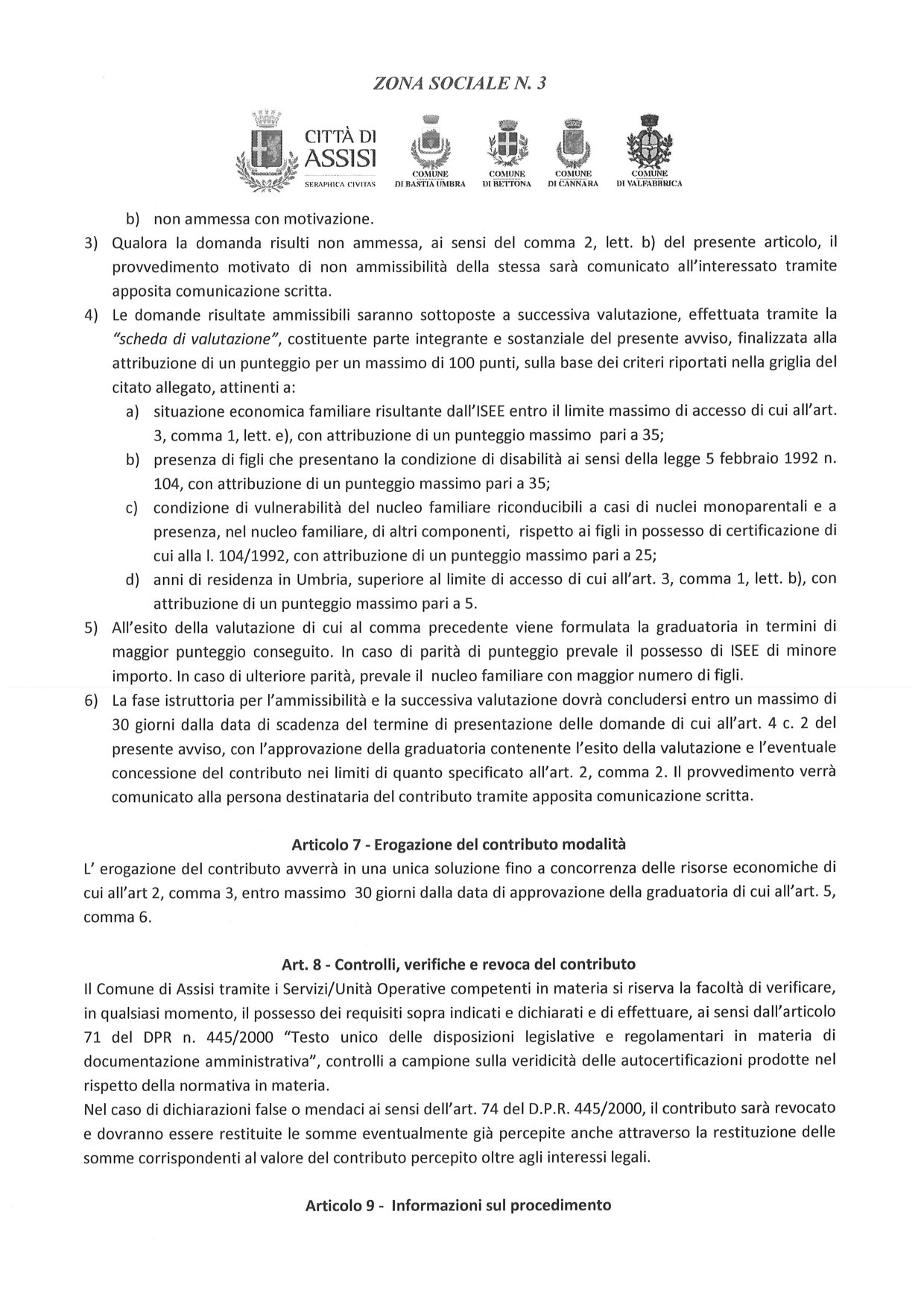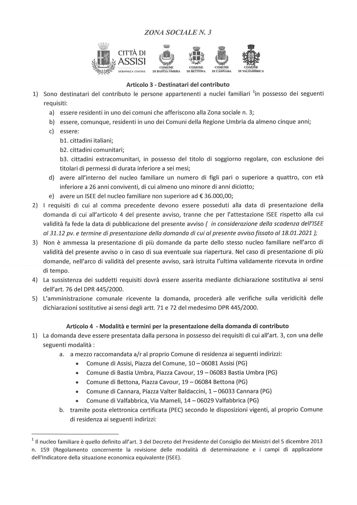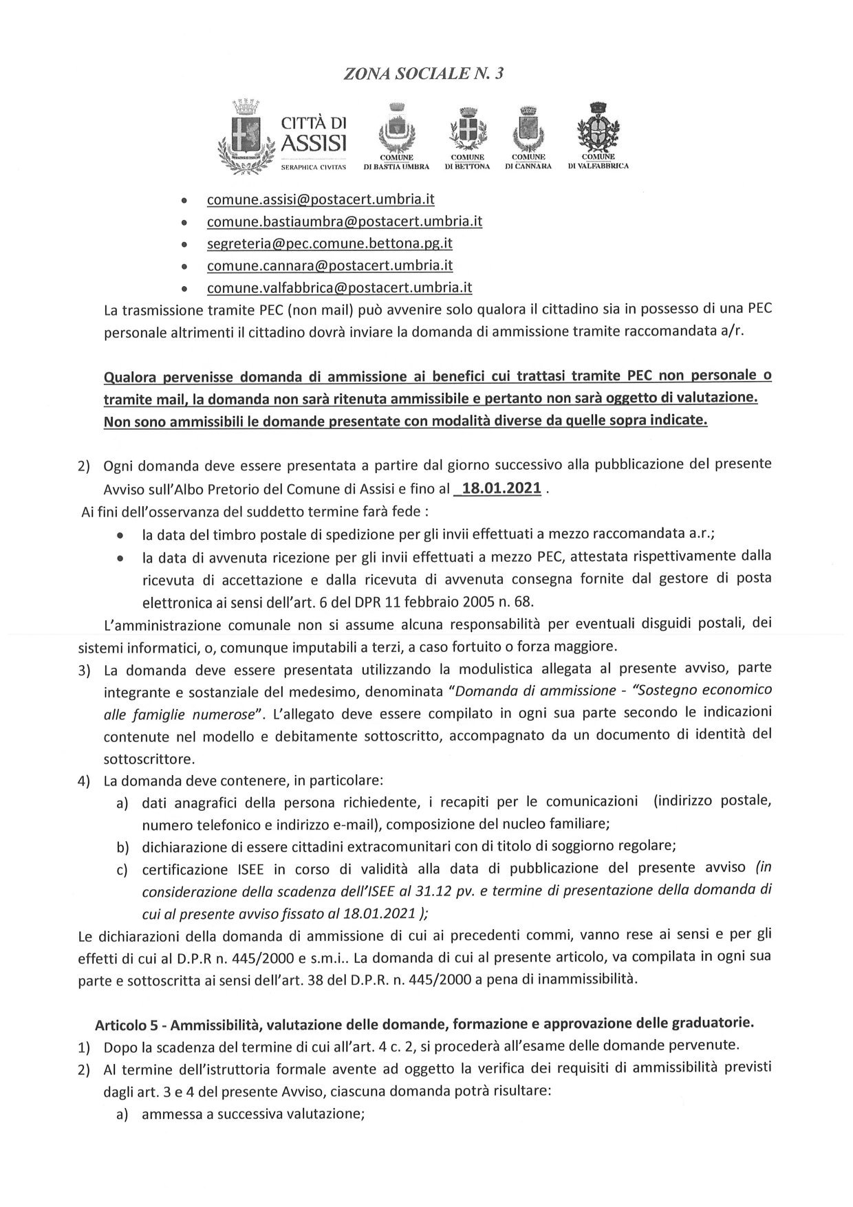 E’ stato pubblicato il bando “Per le famiglie numerose con almeno 4 figli” della Zona Sociale 3 e il relativo modello di domanda (scadenza 18.01.2020); per il Comune di Bastia Umbra la referente per il bando è l’Assistente Sociale Maria Porcaro, info 0758018287